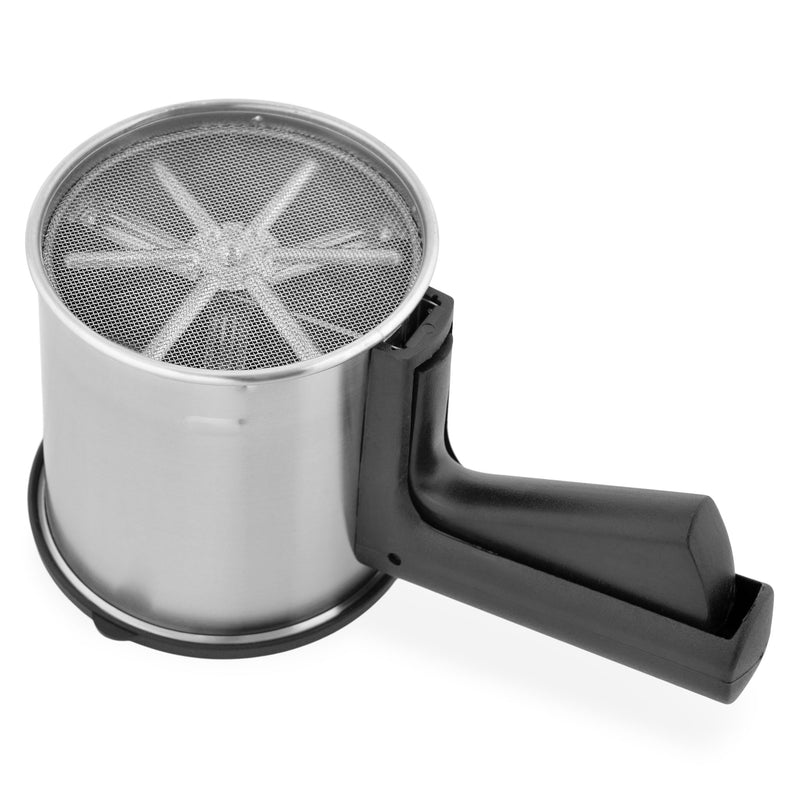 Datorită sitei fine, obții o distribuire uniformă a făinii pe suprafețele de lucru, ceea ce face prepararea aluatului mai ușoară. De asemenea, este ideală pentru decorarea elegantă a torturilor, prăjiturilor și produselor de patiserie sau pentru adăugarea unui strat perfect de cacao peste spuma de cappuccino.