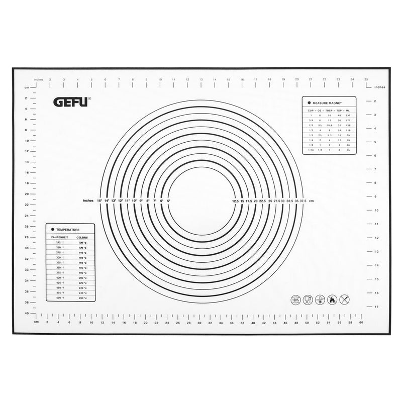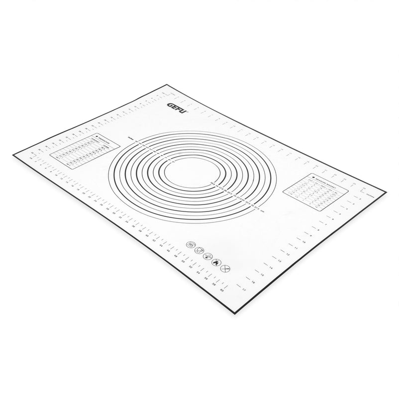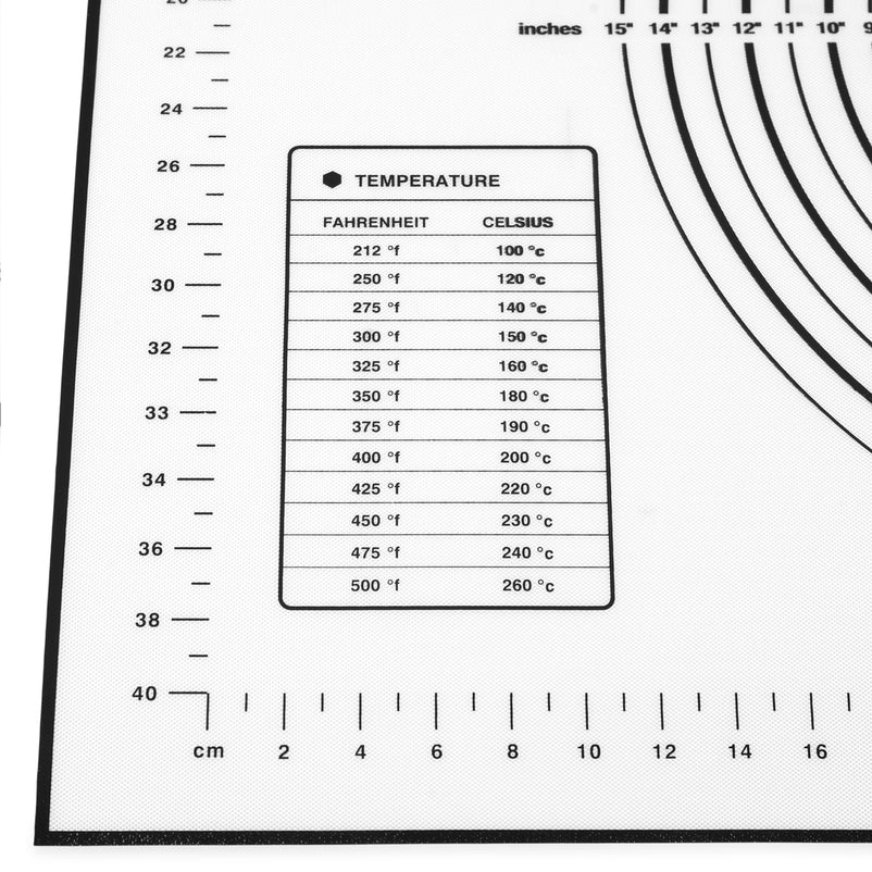 Suport multifuncțional Pad. Acest produs cu un strat special din silicon oferă o acțiune antiaderentă, facilitând rularea, frământarea, coacerea și congelarea fără efort. Datorită caracteristicii anti-alunecare, asigură o prindere fermă pe orice suprafață de lucru. De asemenea, dispune de o scală practică pentru măsurarea formelor rotunde și pătrate și include tabele de conversie pentru cantități și unități de măsură, fiind astfel foarte util în bucătărie. Este complet inodor și insipid, iar rezistența sa la temperaturi extreme (de la -40°C până la 230°C) îl face versatil pentru diverse utilizări. Poate fi ușor rulat și depozitat, economisind astfel spațiu, iar pentru curățare, este suficient să-l ștergi cu o cârpă umedă. Totuși, nu este recomandat a fi folosit ca suprafață de tăiere.