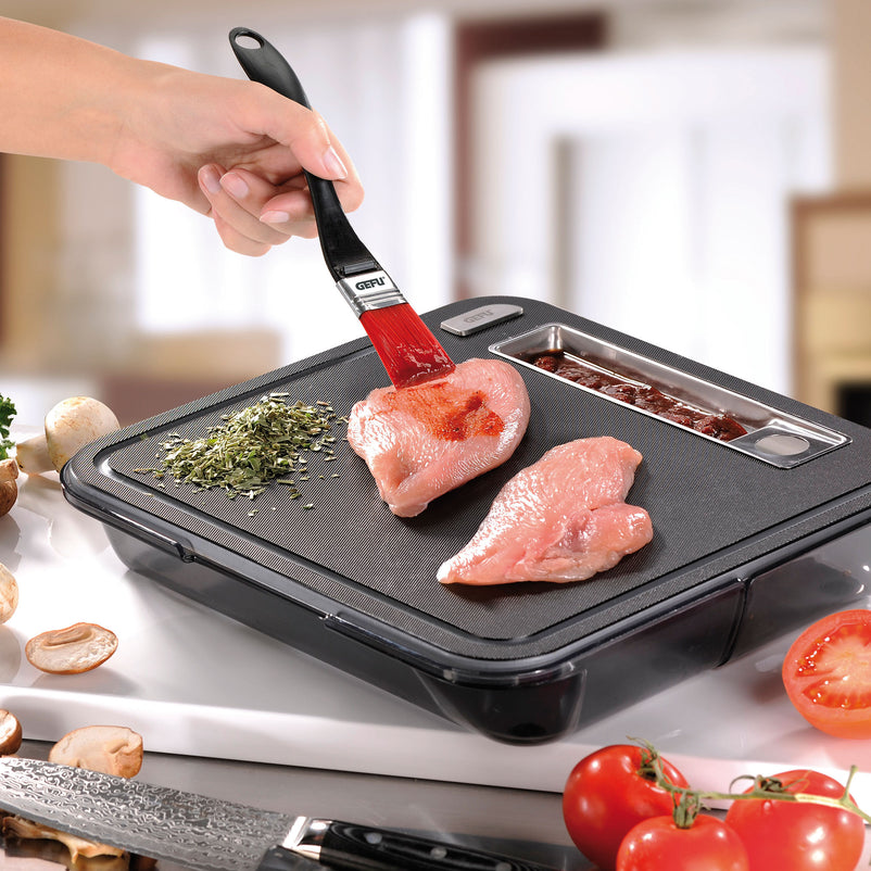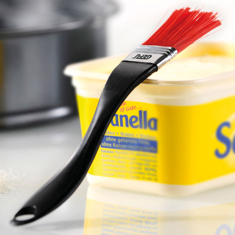 Pensulă bucătărie Becky. Pensula Becky este o ustensilă deosebit de utilă în colecția din bucătăria voastră. Realizată din plastic, este potrivită pentru adăuga sosuri sau alte ingrediente peste preparatele voastre. Părul acesteia din nailon este rezistent la o căldură până la 120 de grade Celsius, asigurând o răspândire uniformă a cremelor peste prăjituri sau a sosurilor peste carne.