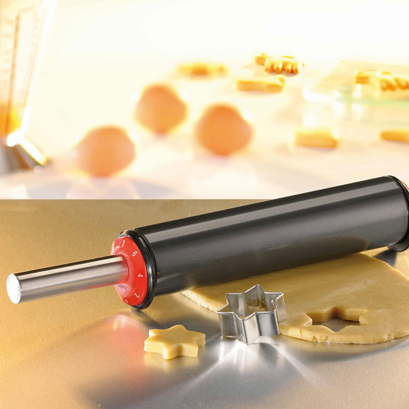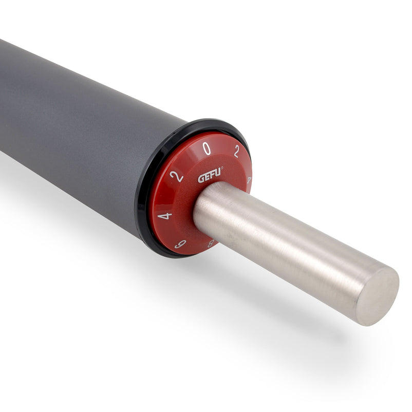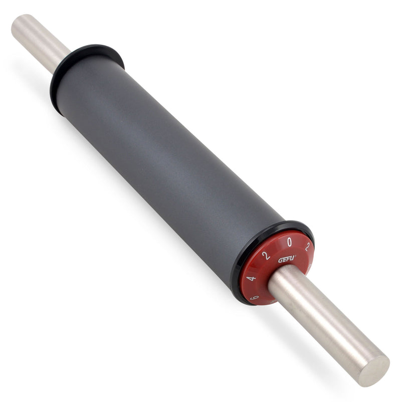 Sucitor ajustabil Exact. Acest tub din aluminiu este prevăzut cu un strat antiaderent ILAG gri. Grosimea aluatului este precisă datorită marcajelor de înălțime de pe roți, iar reglajul se face de la 0 la 8 mm.