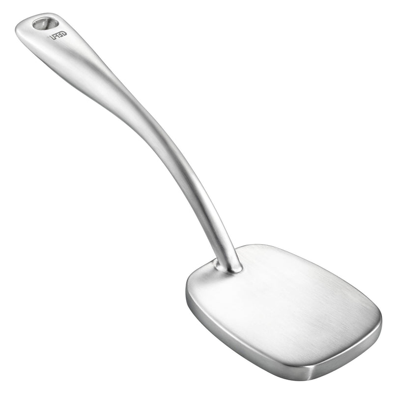 Ustensilă pentru frăgezit carnea Tenera. Ustensila combină o calitate extrem de solidă cu un design ergonomic, asigurând aplatizarea rapidă și uniformă a șnițelelor și a cărnii pentru rulade. Realizată din oțel inoxidabil finisat, aceasta permite obținerea grosimii dorite în doar câteva secunde. Mânerul său ergonomic oferă confort maxim în utilizare, iar datorită orificiului pentru agățare, poate fi depozitat cu ușurință pe orice suport de bucătărie.