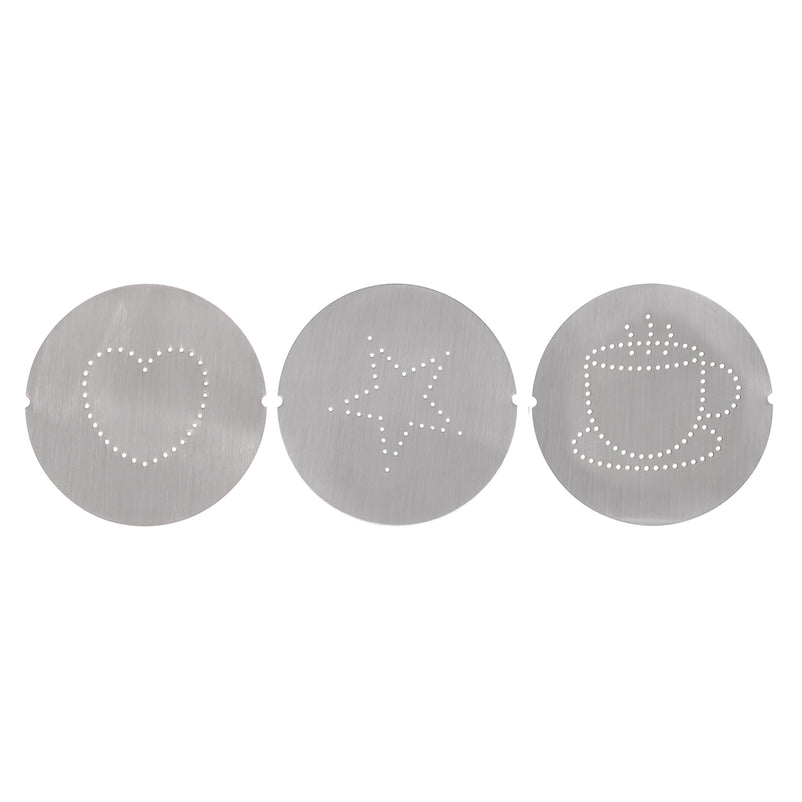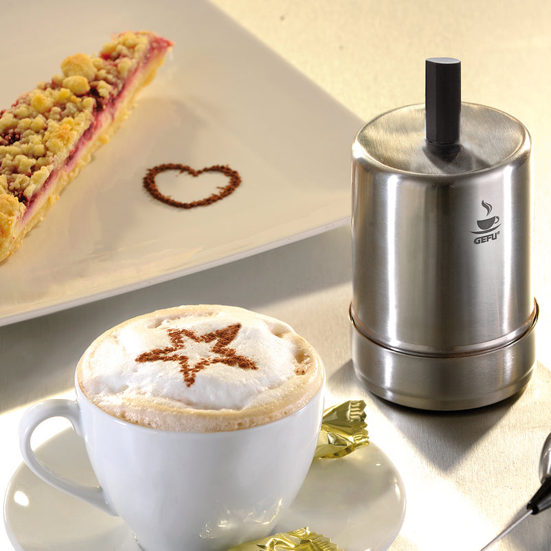 Dozator decor cu 3 forme, inima, stea, ceasca Fina. Dozatorul Fina decoreaza vesel spuma din lapte si deserturile, oferindu-va preparate pe cat de gustoase, pe atat de aspectuoase. Include 3 forme diferite pentru decor, care pot fi depozitate in interiorul acestuia chiar si atunci cand nu sunt folosite. Cu o inima, stea sau o ceasca, aspectul preparatele voastre va fi desavarsit.