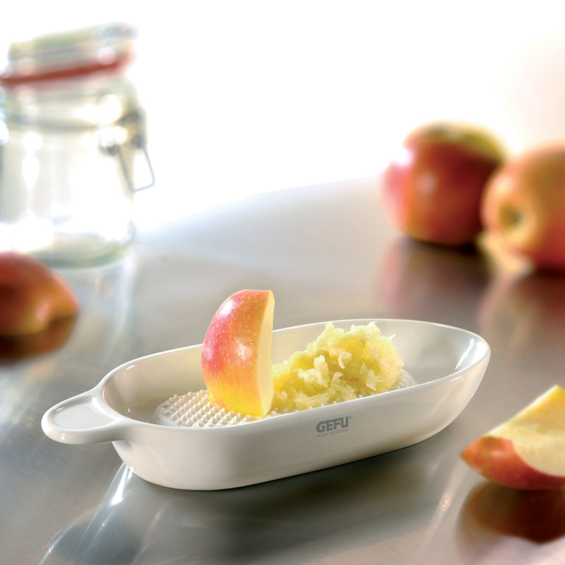 Răzătoare fructe Fruttare. Răzătoare din ceramică cu dinți extrem de tari și ascuțiți, care oferă rezultate excelente. Transformă nu doar merele, morcovii și ridichile într-o pastă fină, dar poate razui chiar și ghimbirul, nucșoara și usturoiul. Vă rugăm să nu folosiți obiecte metalice pentru a freca suprafața de răzuit.