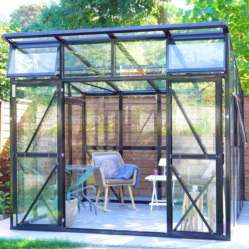 Oranjerie/Pavilion Urban. Designul său unic și calitatea superioară vor fi o veste incitantă pentru toți clienții. Poate fi multifuncțională, adăugând mobilier, plante, decorațiuni, personalizând spațiul după bunul plac. Acest pavilion/oranjerie de înaltă calitate este construit cu conectori din aluminiu super puternici (2,5 mm grosime) și profile exclusive din aluminiu cu secțiune de cutie ultra-rezistentă (65x65 mm). Sticla securizată de 4 mm pe partea de acoperiș, cât și pe laterale. Panourile din sticlă sunt reținute cu grijă cu o garnitură exterioară substanțială. În plus, toate șuruburile și piulițele sunt invizibile pentru acest model. Astfel, acest pavilion/oranjerie arată extrem de îngrijit, elegant și de calitate superioară. Poate fi o soluție excelentă pentru o zonă de agrement în aer liber când spațiul casei tale este limitat.
