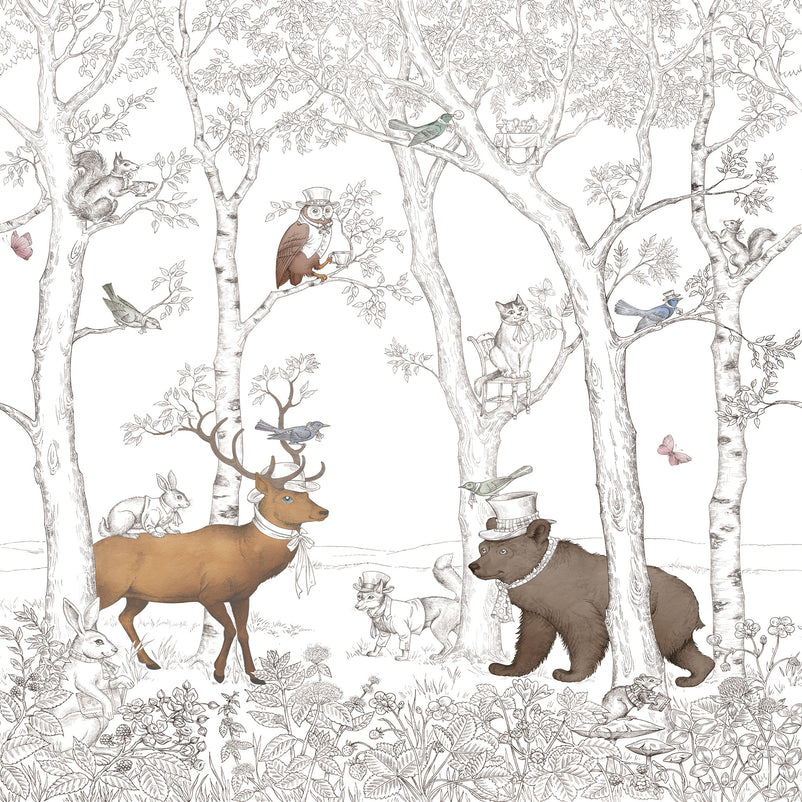 Tapet Forest. Tapetul din gama Forest este o variantă deosebită și practică pentru a decora cu creativitate camera copiilor voștri. Fie că alegeți să tapetați un perete sau întreaga cameră, acesta nu va trece neobservat. Tapetul Forest are un model cu animăluțe într-o pădure ce va invita copilul în lumea poveștilor.