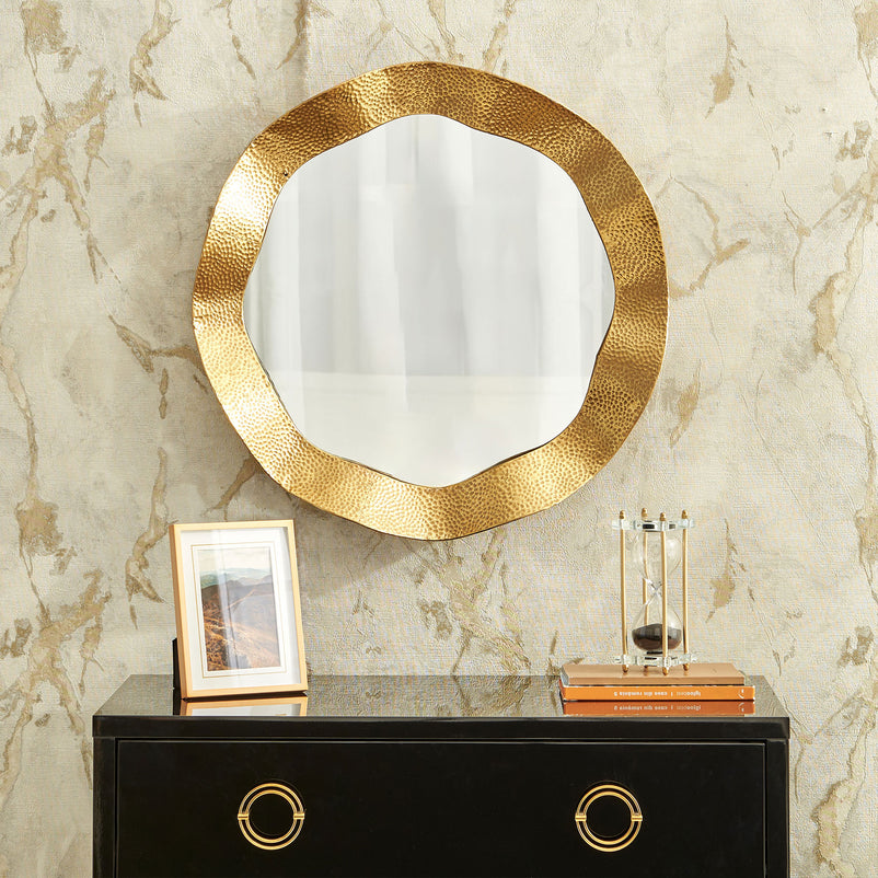Oglindă Marisol. Elegantă și modernă, oglinda din gama Marisol este o piesă de mobilier cu un design original care va atrage atenția cu mare ușurință. Aceasta este fabricată din metal și oglindă, finisajul vopsit asigurându-i un aspect strălucitor și deosebit. Rama acesteia are un design vălurit care îi oferă acesteia un aspect luxuriant.