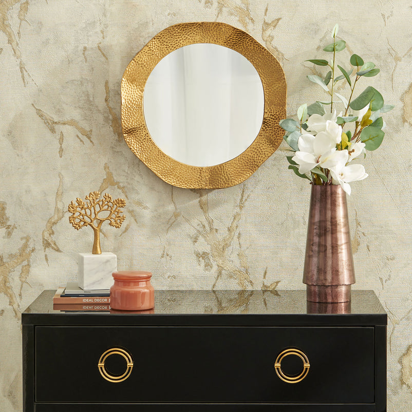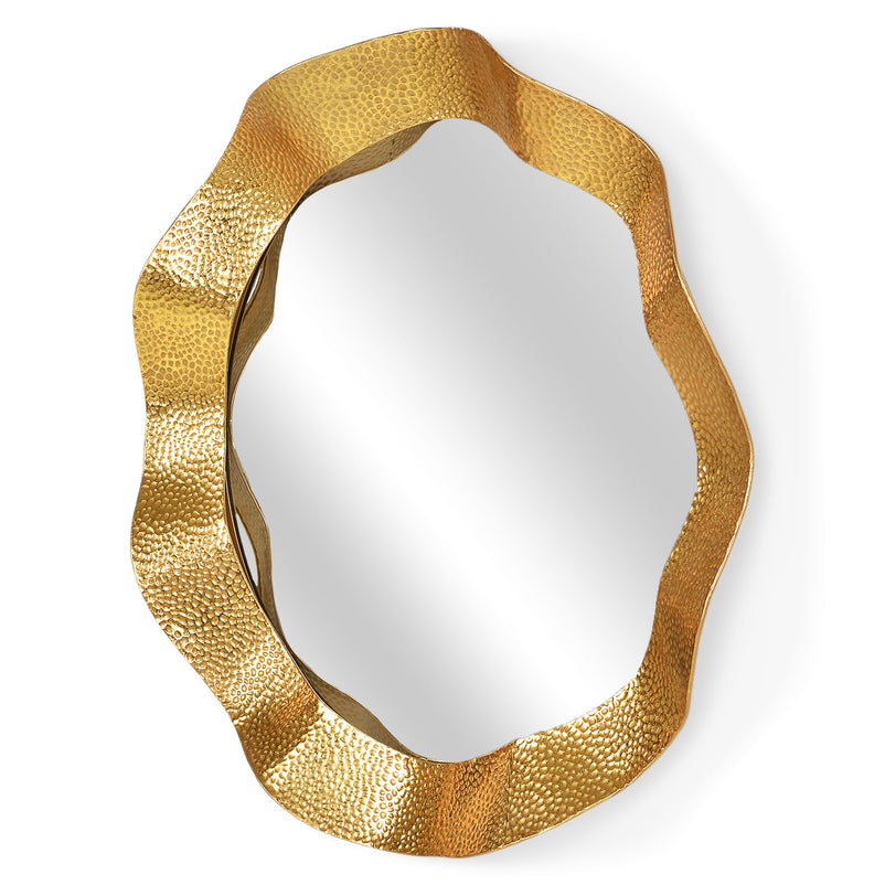 Oglindă Marisol. Elegantă și modernă, oglinda din gama Marisol este o piesă de mobilier cu un design original care va atrage atenția cu mare ușurință. Aceasta este fabricată din metal și oglindă, finisajul vopsit asigurându-i un aspect strălucitor și deosebit. Rama acesteia are un design vălurit care îi oferă acesteia un aspect luxuriant.