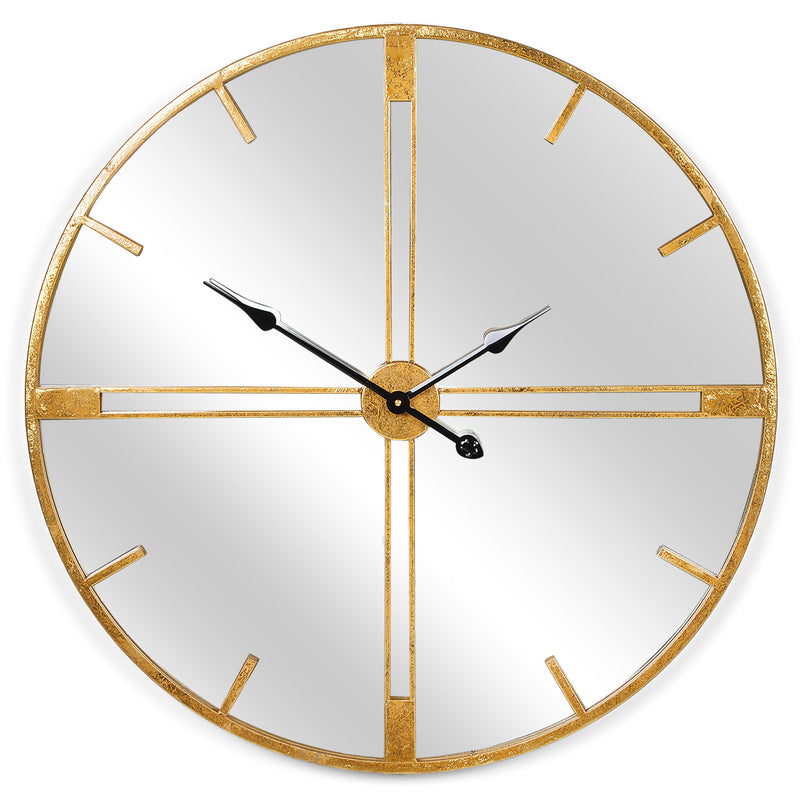 Ceas Reflection. Amplasați ceasul Reflection într-un loc perfect pentru a fi complimentat de toți invitații. Acesta este un accesoriu decorativ ce îndeplinește atât latura funcțională, cât și cea estetică. Designul său modern este asigurat de oglinda elegantă și de nuanța aurie, ce îi conferă un aspect luxuriant.
