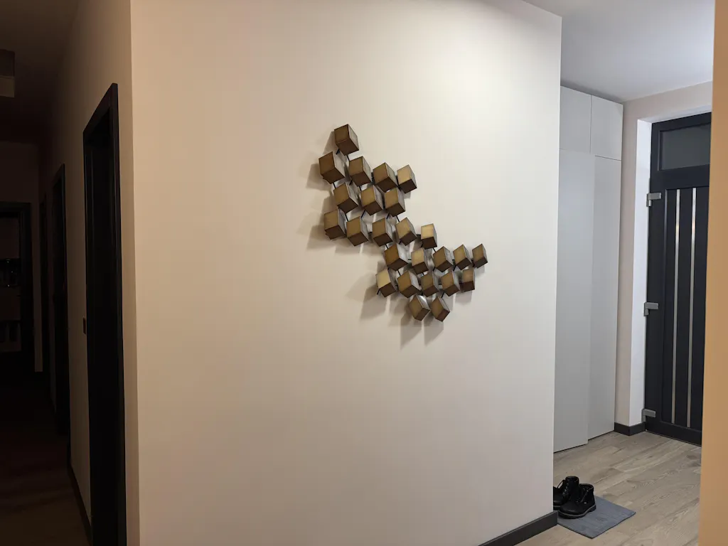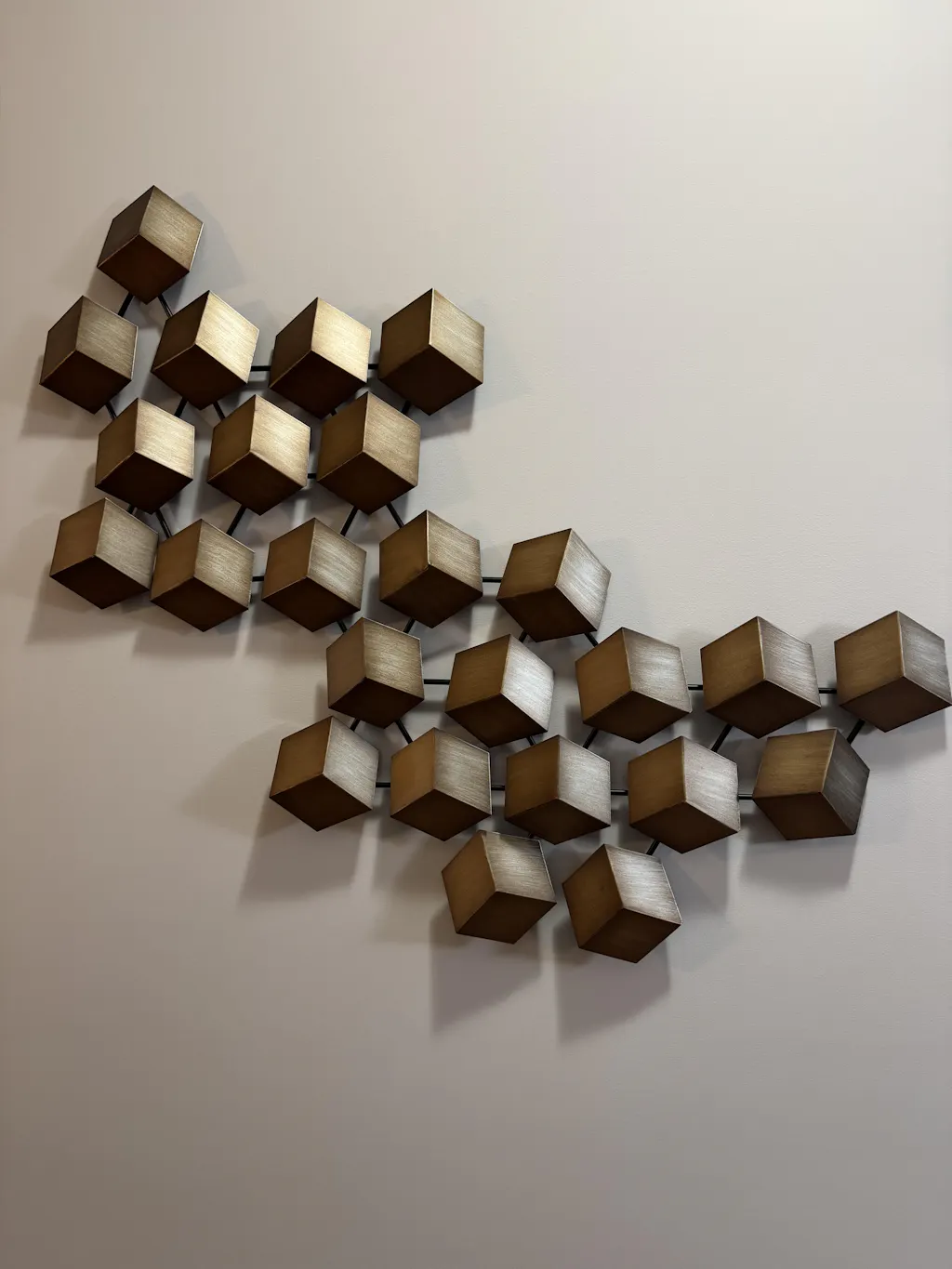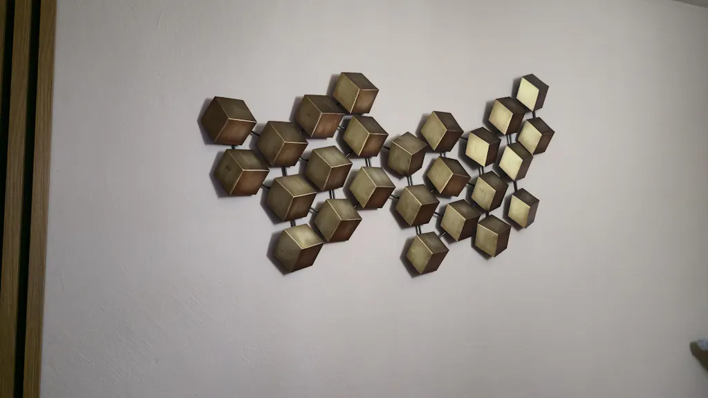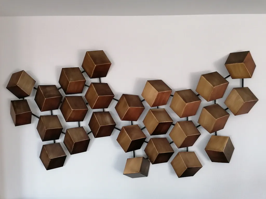 Decorațiune Geometry. Decorațiunea Geometry decorează orice încăpere cu ușurință, grație aspectului modern și elegant. Cuburile realizate din metal formează un accesoriu spectaculos, care va fi pus în valoare de orice aranjament interior.