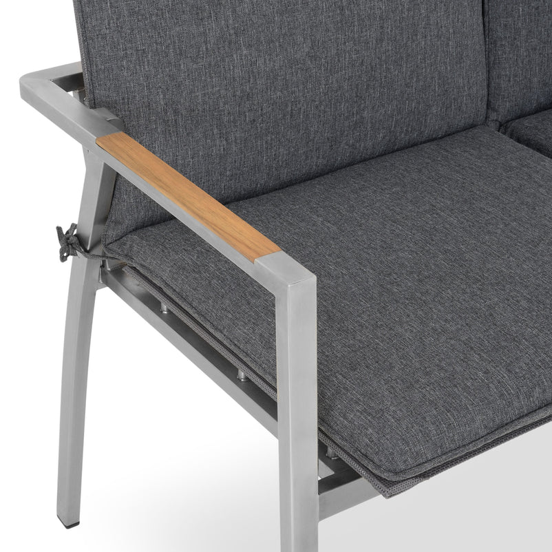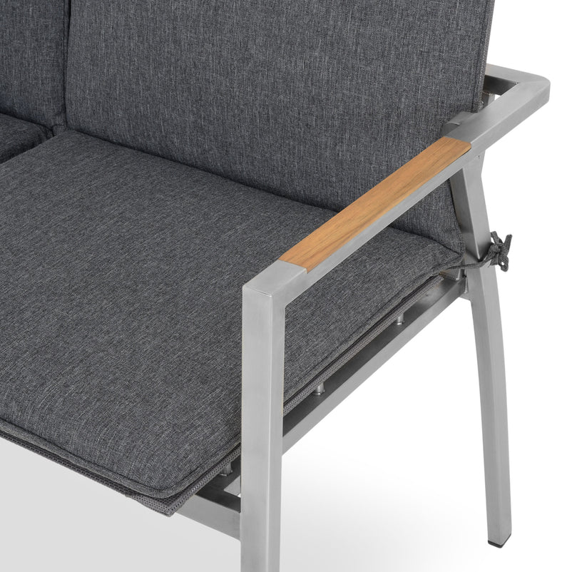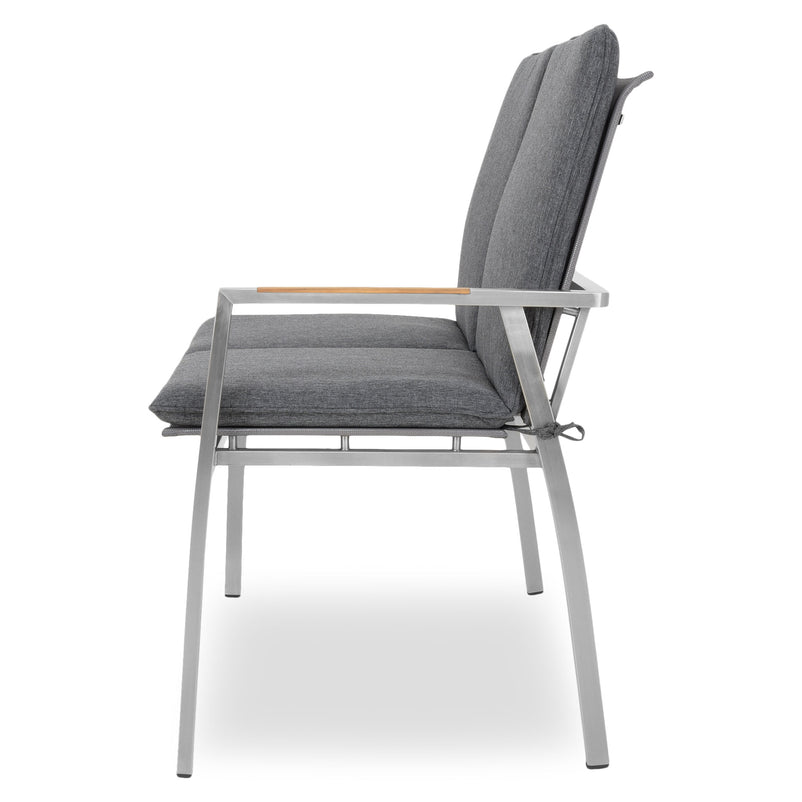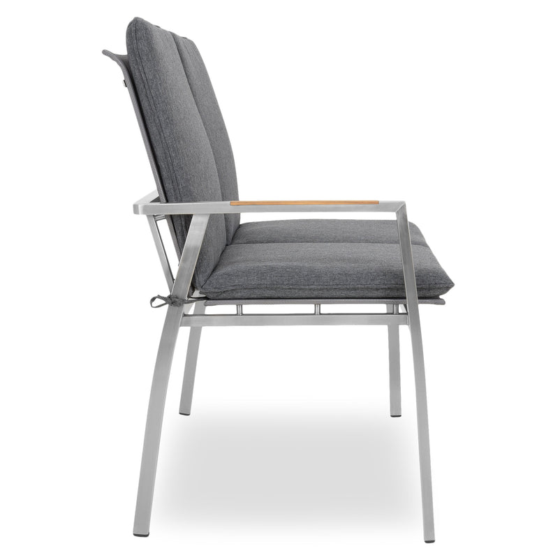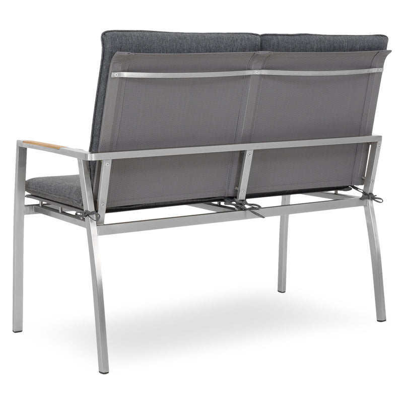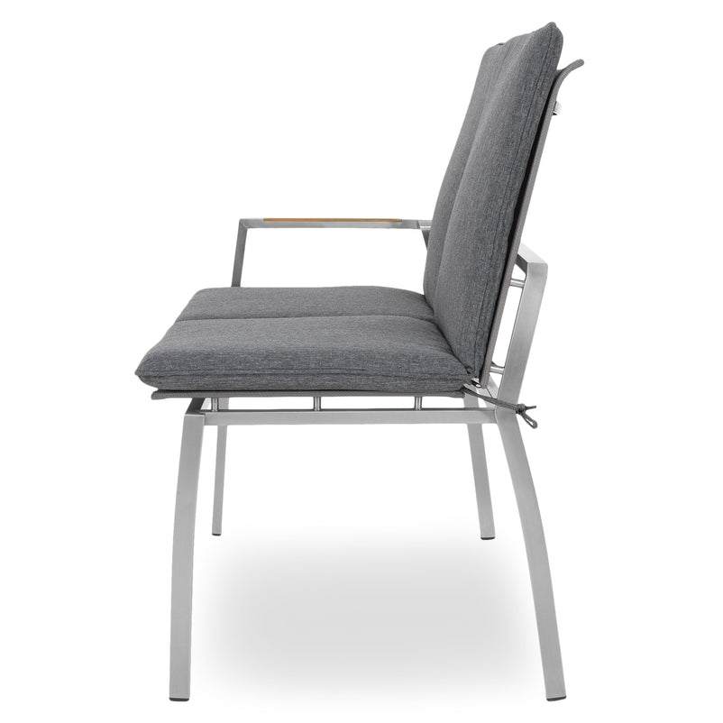 Canapea exterior, 2 locuri braț stânga/dreapta Collodi. Adunați-vă prietenii pe terasa sau grădina de acasă și stați confortabil la un pahar de vin, pe o canapea elegantă din gama Collodi. Realizată din structură de inox, cu șezutul și spătarul din textilină fină 2*1 cu protecție UV, canapeaua include perne din țesătură Olefin cu protecție împotriva umezelii și a decolorării. De asemenea, pe brațele mobilierului sunt inserții din lemn de teak. Simțiți-vă comod în mediul vostru de bine de acasă și insuflați o nouă înfățișare terasei sau grădinii.