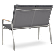 Canapea exterior, 2 locuri Collodi. Adunați-vă prietenii pe terasa sau grădina de acasă și stați confortabil la un pahar de vin pe o canapea elegantă din gama Collodi. Realizată din structură de inox, cu șezutul și spătarul din textilină fină 2*1 cu protecție UV, canapeaua include perne din țesătură Olefin cu protecție împotriva umezelii și a decolorării. De asemenea, pe brațele mobilierului sunt inserții din lemn de teak. Simțiți-vă comod în mediul vostru de bine de acasă și insuflați o nouă înfățișare terasei sau grădinii.