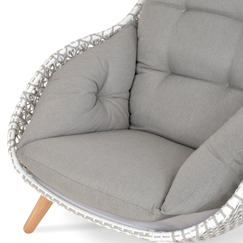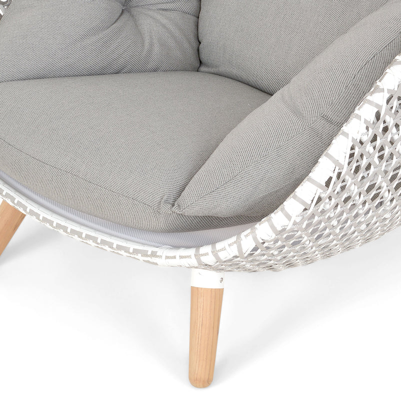 Fotoliu exterior Bora Bora. Profitați de zilele însorite în gradina sau terasa voastră și relaxați-vă în fotoliul Bora Bora care vă va oferi tot confortul de care aveți nevoie. Fotoliul are o structură realizată din aluminiu și este împletită cu fibre sintetice, pernele sunt moi și confortabile, îmbrăcate în țesătură din poliester, iar picioarele din lemn susțin întregul fotoliu, conferindu-i rezistență și durabilitate. Cromatica fotoliului este plăcută și reprezintă o alegere versatilă, practică și estetică pentru decorul terasei sau grădinii voastre. Produsul este impermeabil și rezistent la razele UV.