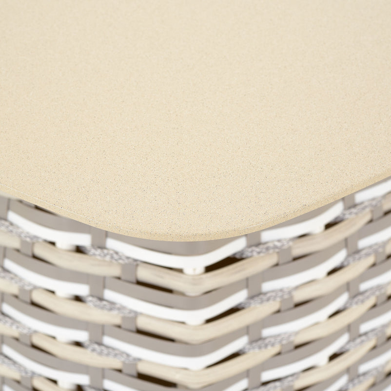 Măsuță cafea exterior Bora Bora. Practică și ușor de integrat în cadrul amenajării din exterior, măsuța de cafea Bora Bora vă poartă cu gândul la vacanță. Măsuța este realizată din materiale rezistente, care îi asigură durabilitatea și are o cromatică luminoasă și versatilă.