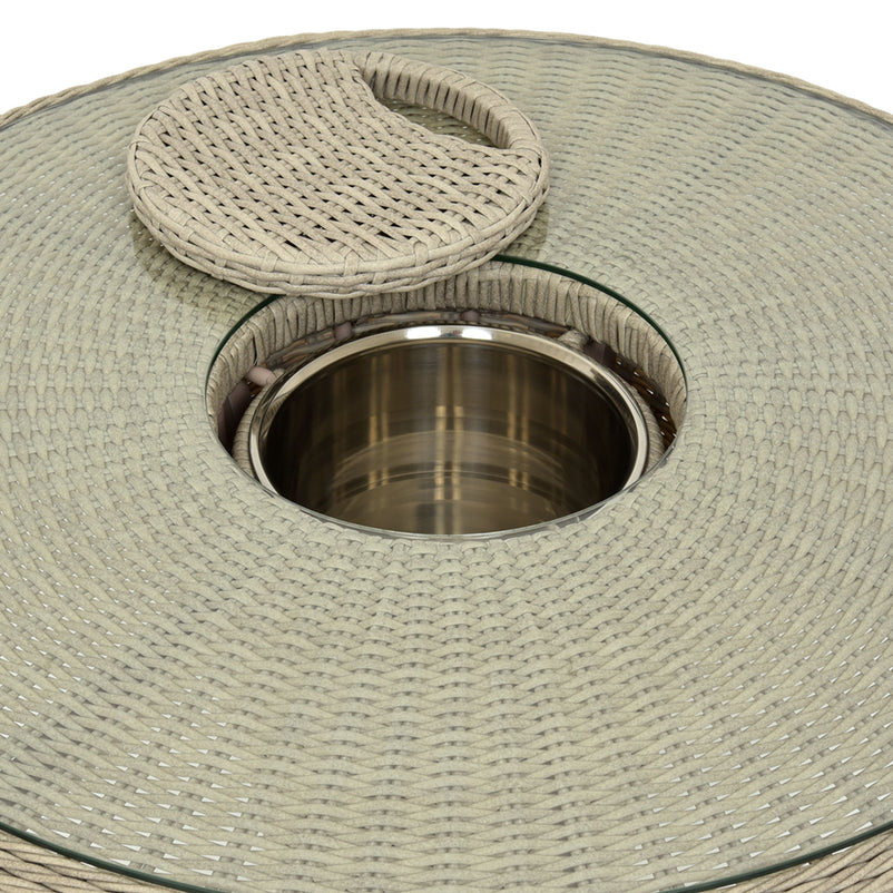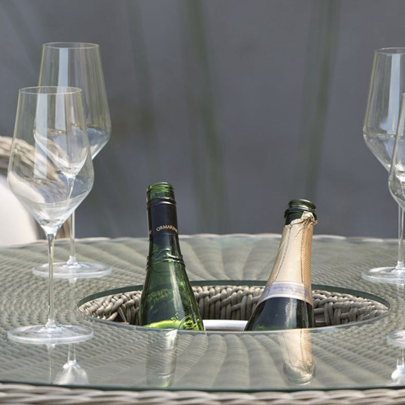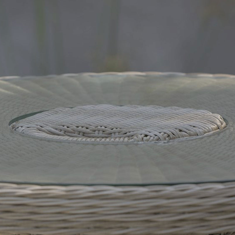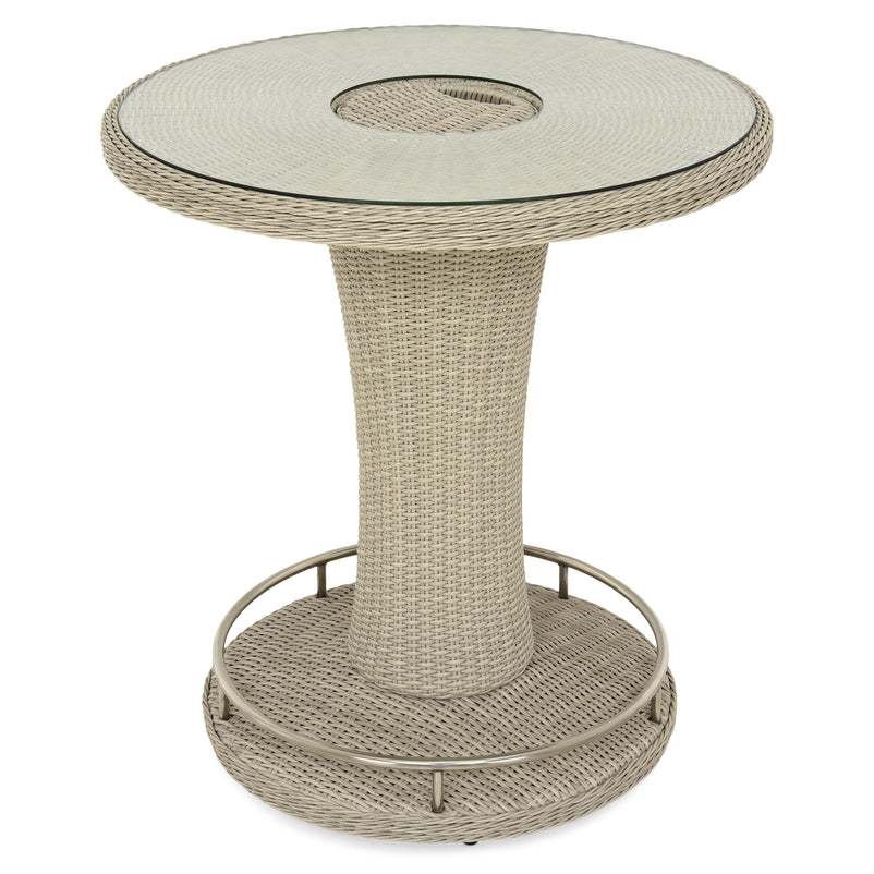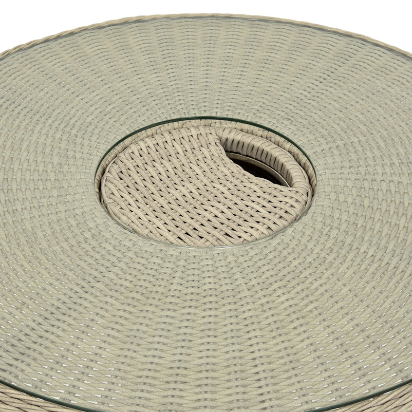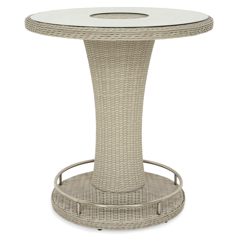 Set mobilier terasă/grădină, 4 scaune bar și masă Erin. Bucurați-vă de o notă de super-yacht chic cu colecția noastră Erin. Cu țesătură luxoasă din piele artificială, care este complet tapițată cu ratan sintetic, astfel încât nu sunt necesare perne. Fabricate cu un cadru din aluminiu vopsit în camp electrostatic, piesele din gama Erin sunt ușoare, durabile și confortabile. Blatul mesei din sticlă este îngropat în împletitura pentru protecție și estetică sporite.