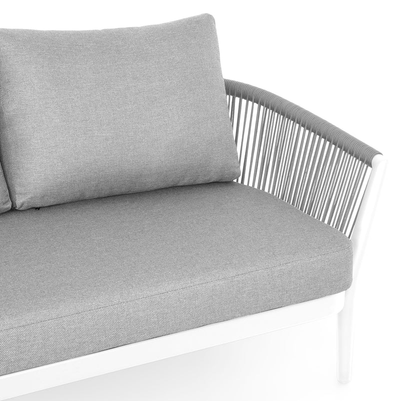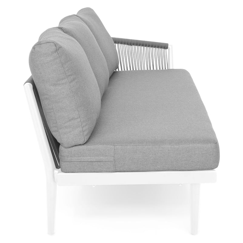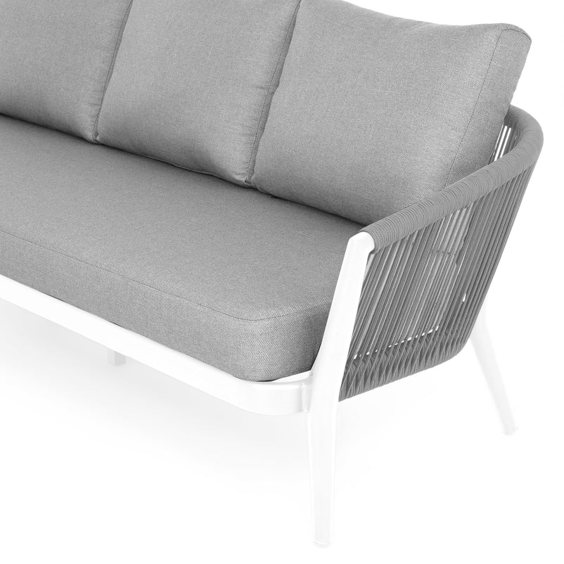Canapea exterior, 3 locuri Orso. Canapeaua din gama Orso este o variantă versatilă pentru terasa sau grădina voastră. Aceasta este ideală pentru mediul exterior, având o structură impermeabilă. Finisajul negru vopsit se va încadra perfect în decorul spațiului exterior, conferind senzația de liniște și confort. Aceasta este realizată din structură solidă de aluminiu vopsită în câmp electrostatic și împletită cu fibre din poliester cu protecție UV ce imită funia. Include perne îmbrăcate în țesătură Olefin cu protecție împotriva umezelii și a razelor UV. Cromatica este versatilă, iar canapeaua va completa cu mult bun gust amenajarea de pe terasă sau grădină. Amenajați terasa sau grădina voastră cu stil, creând propria oază de relaxare cu piesele versatile din gama Orso.