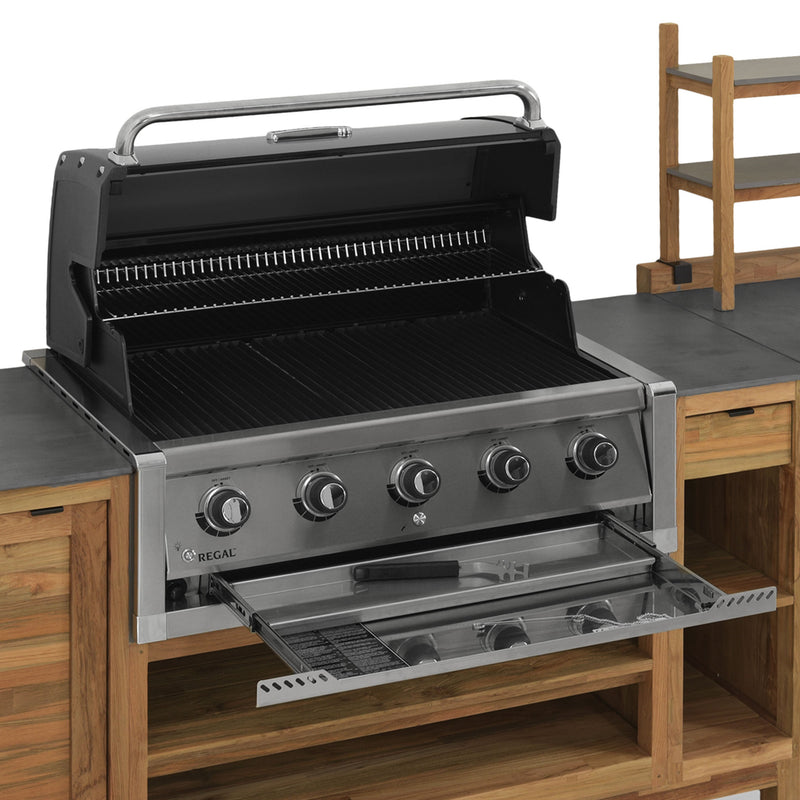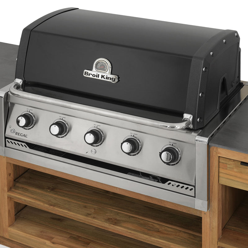 Setul include top grătar încastrat Broil King Regal 520, cu panou emailat negru, capace din aluminiu turnat și cutie de gătit din oțel. Grătarele sunt din fontă Flav-R, cu sistem de gătit Flav-R-Wave din inox. Grătarul dispune de 4 arzătoare Dual-Tube din inox (16 kW), aprindere electronică Sure-Lite și termometru Deluxe Accu-Temp. Suprafața totală de gătit este de 5645 cm², din care 4032 cm² zona principală.