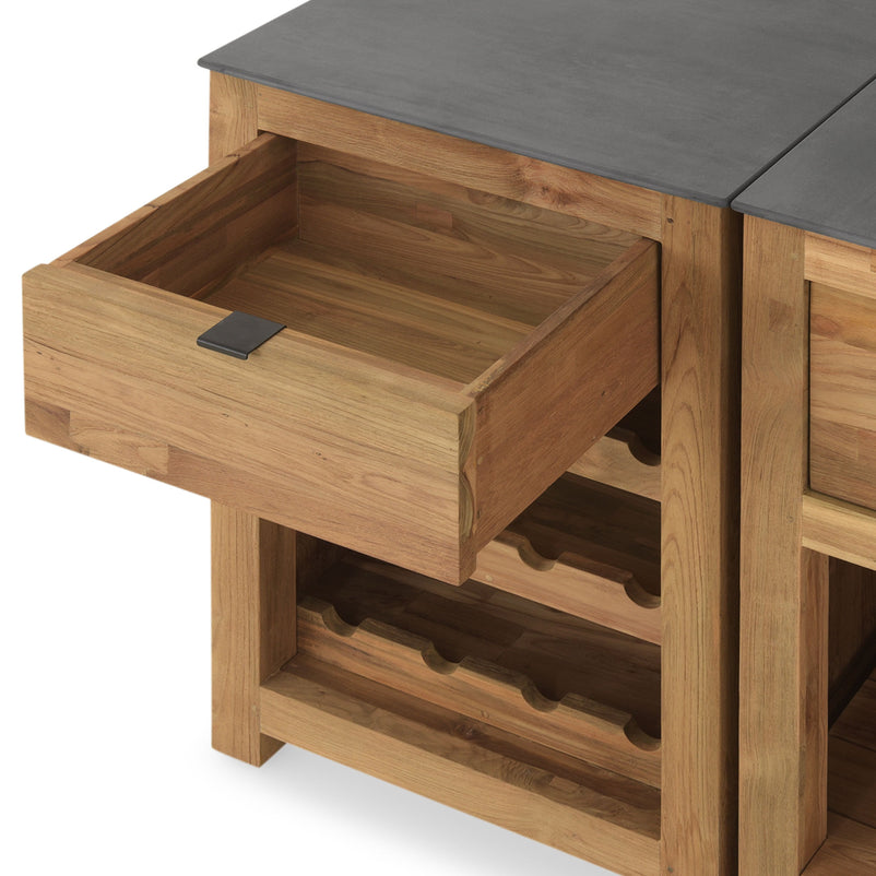 Bucătărie modulară de exterior Country – teak reciclat & blat ceramic