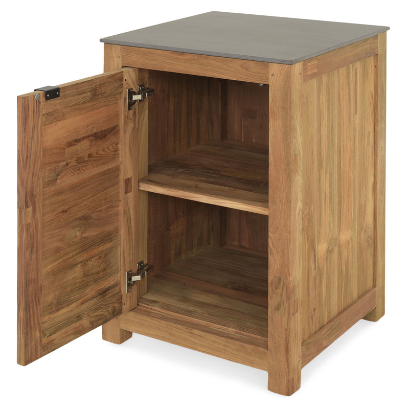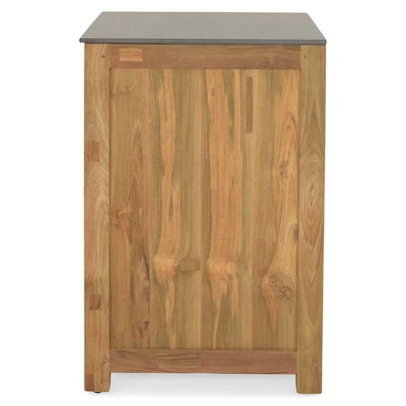 Corp 1 ușă Country. Transformă-ți terasa într-un spațiu complet funcțional cu bucătăria modulară Country, creată special pentru exterior. Realizată din lemn de teak reciclat, rezistent la intemperii și cu un aspect natural autentic, bucătăria combină eleganța rustică cu funcționalitatea modernă. Blatul din ceramică adaugă durabilitate și rafinament, fiind ușor de întreținut și perfect pentru gătit în aer liber.