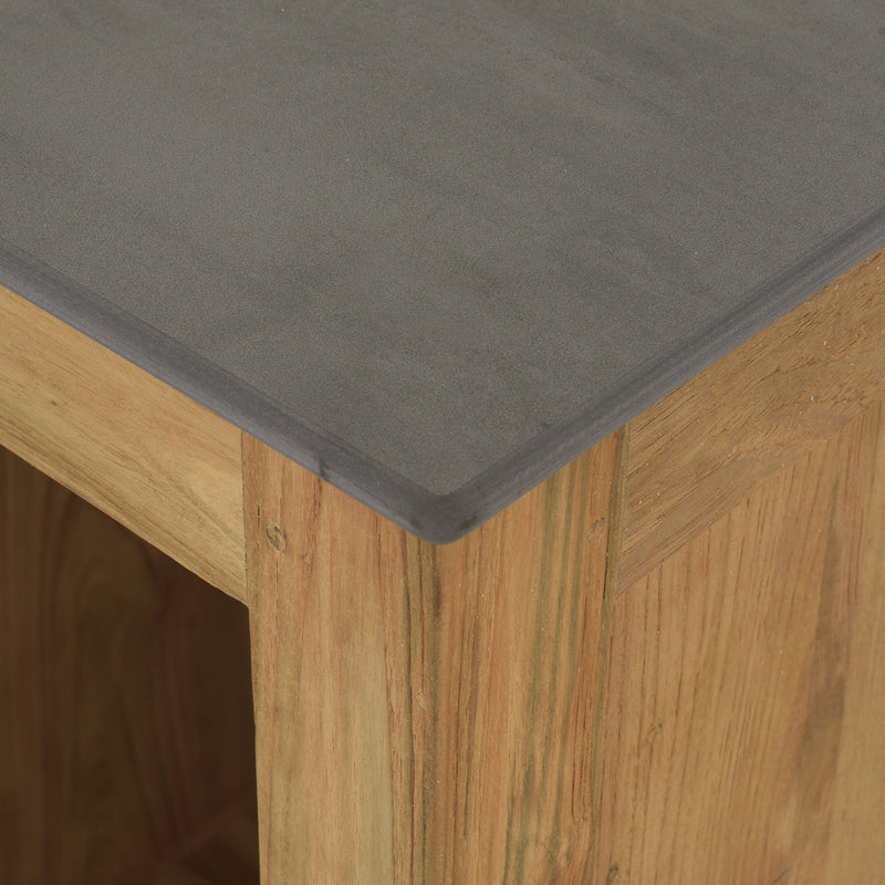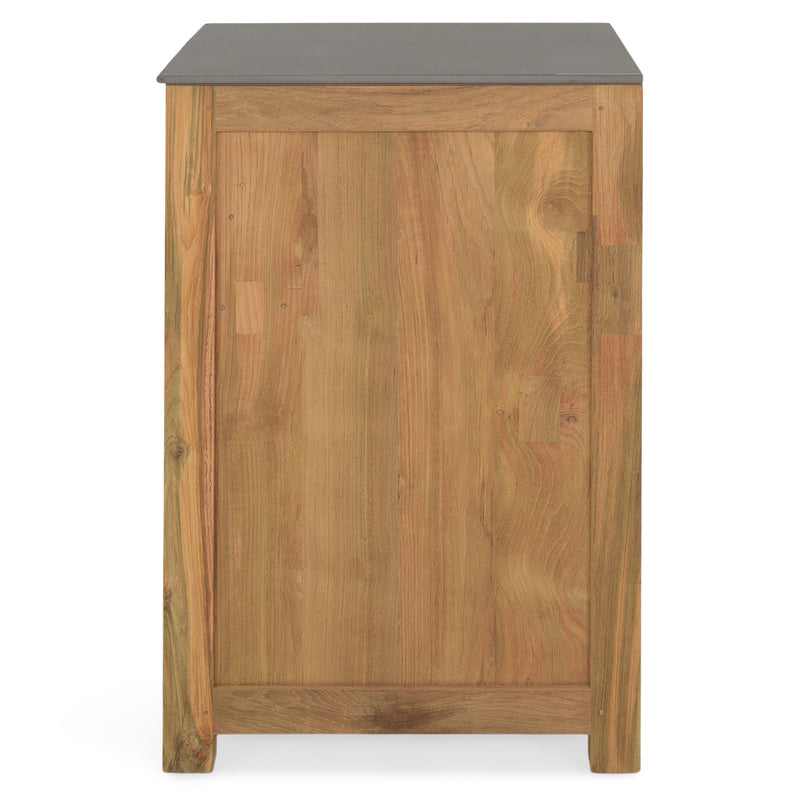 Corp pentru frigider Country. Transformă-ți terasa într-un spațiu complet funcțional cu bucătăria modulară Country, creată special pentru exterior. Realizată din lemn de teak reciclat, rezistent la intemperii și cu un aspect natural autentic, bucătăria combină eleganța rustică cu funcționalitatea modernă. Blatul din ceramică adaugă durabilitate și rafinament, fiind ușor de întreținut și perfect pentru gătit în aer liber.