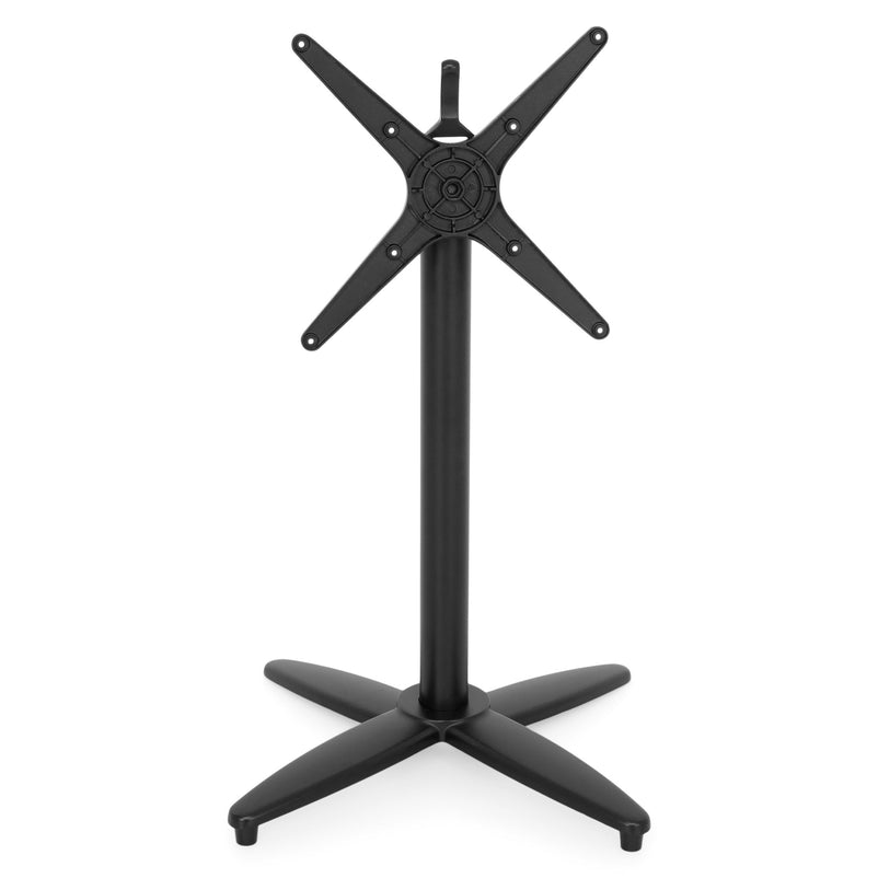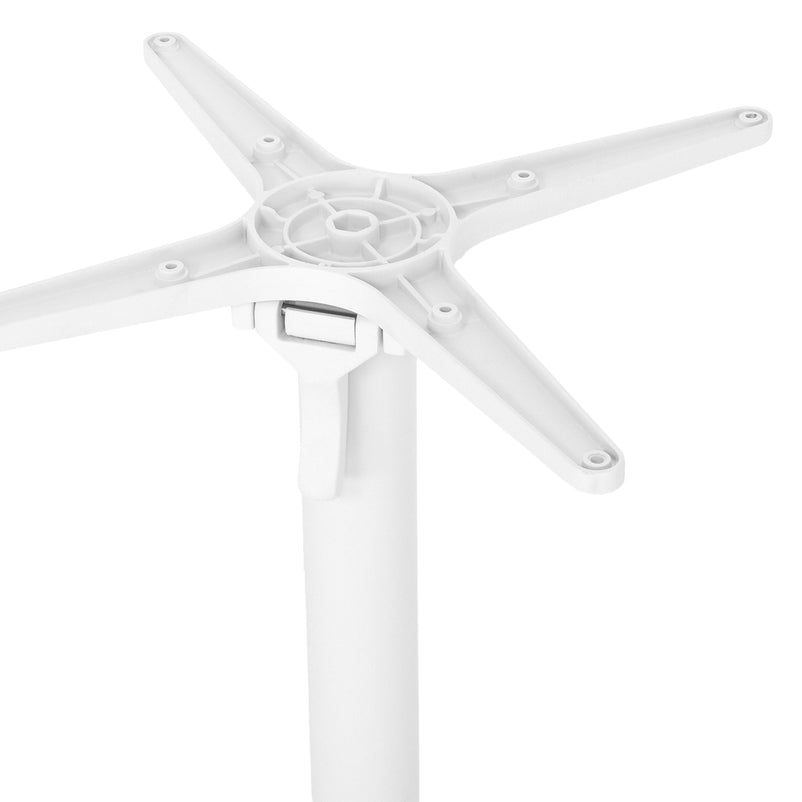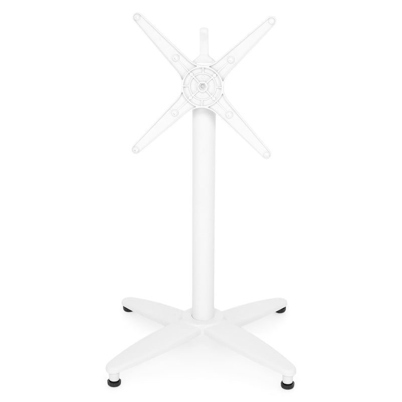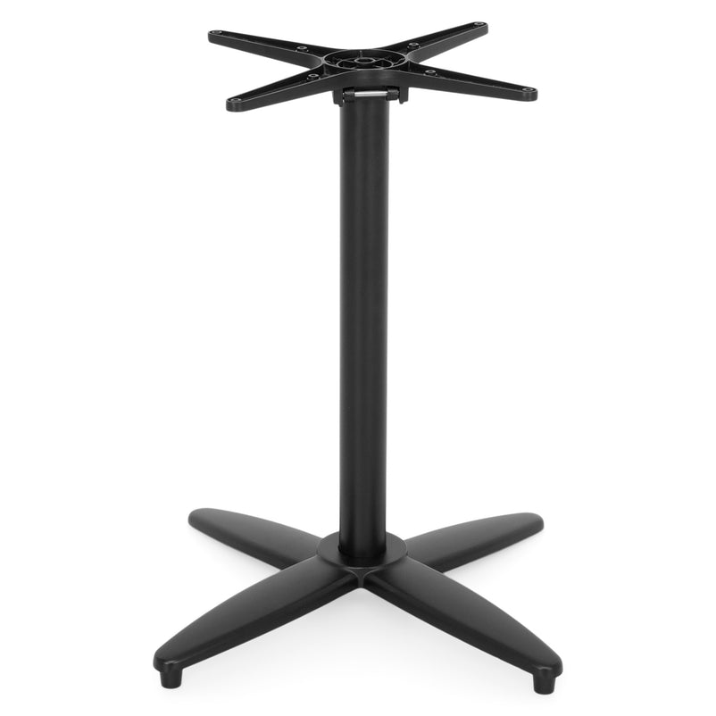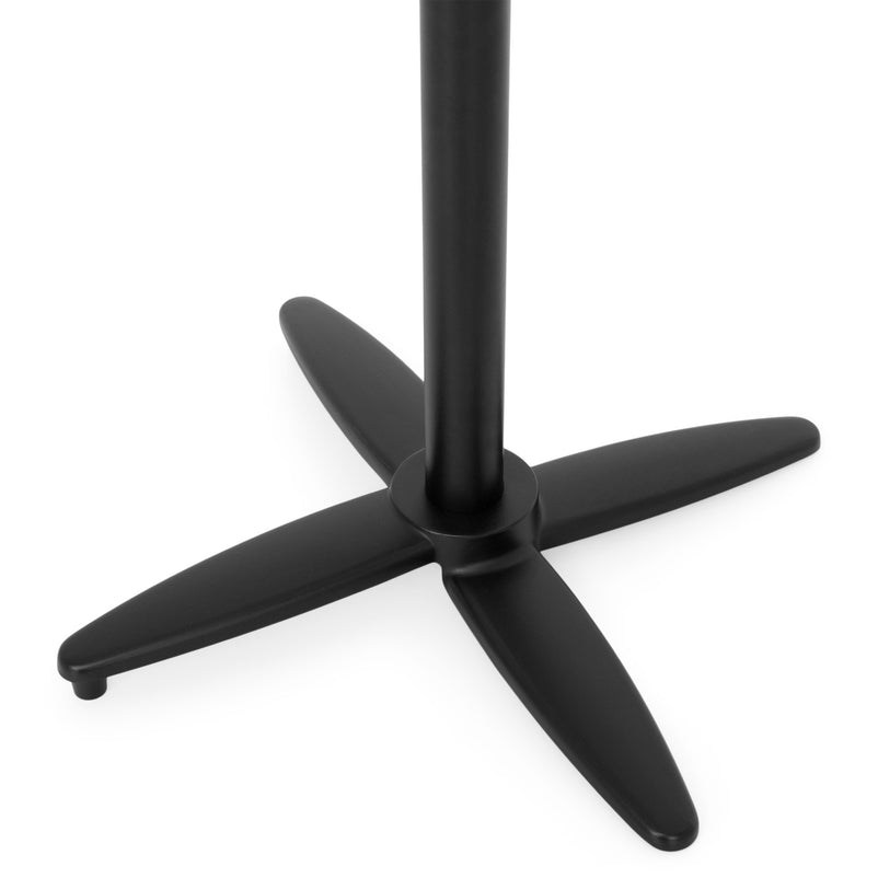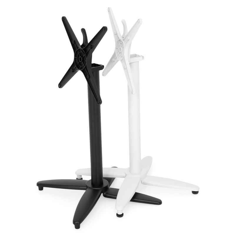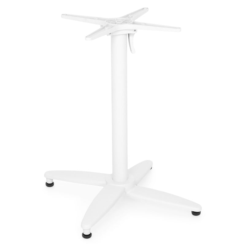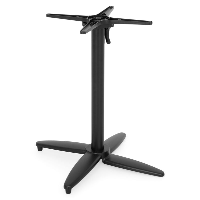 Structură masă Cleo. Structura pentru masă din gama Cleo este o variantă modernă, pentru spațiile mici, dar și pentru cei care vor să se bucure de beneficiile tehnicii contemporane. Structura are un picior în formă de stea cu 4 brațe și un suport de susținere a topului de masă tot în formă de stea cu 4 brațe. În plus, partea superioară se apleacă pentru ca masa să poată fi pliată și depozitată cu ușurință. Perfect pentru o masă pe care să o așezați pe terasa sau în grădina voastră, suportul este confecționat din aluminiu, de culoare argintiu.