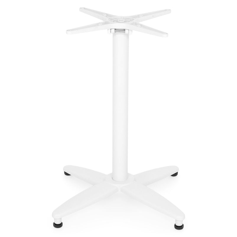 Structură masă Cleo. Structura pentru masă din gama Cleo este o variantă modernă, pentru spațiile mici, dar și pentru cei care vor să se bucure de beneficiile tehnicii contemporane. Structura are un picior în formă de stea cu 4 brațe și un suport de susținere a topului de masă tot în formă de stea cu 4 brațe. În plus, partea superioară se apleacă pentru ca masa să poată fi pliată și depozitată cu ușurință. Perfect pentru o masă pe care să o așezați pe terasa sau în grădina voastră, suportul este confecționat din aluminiu, de culoare argintiu.