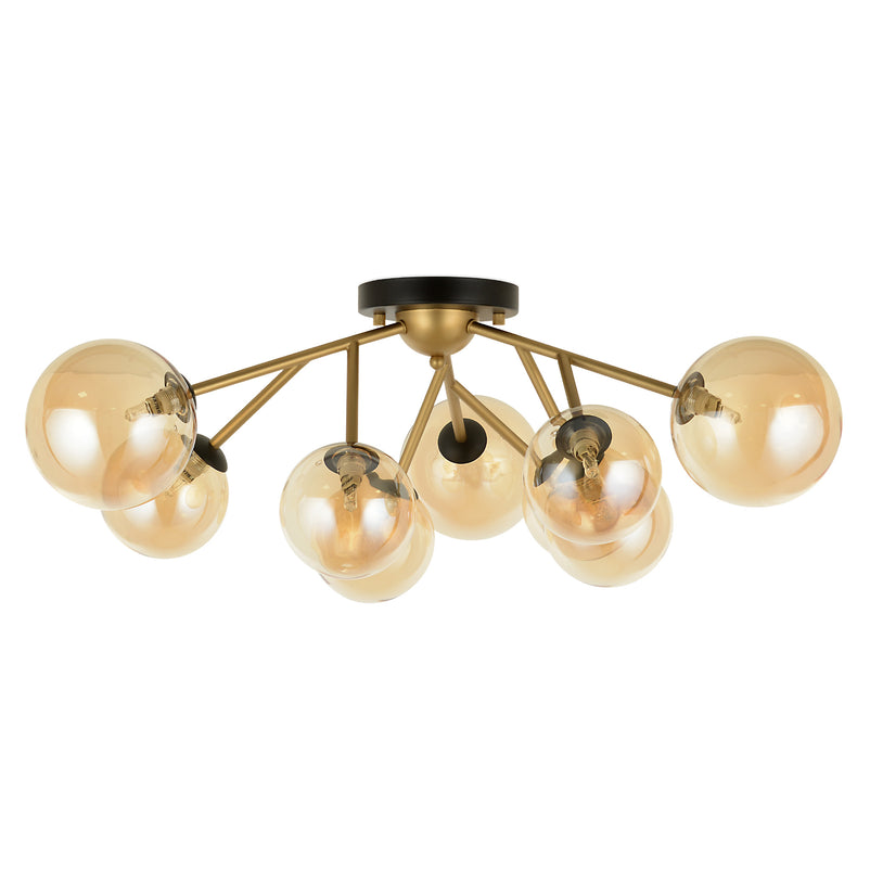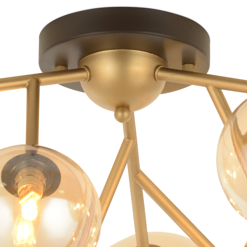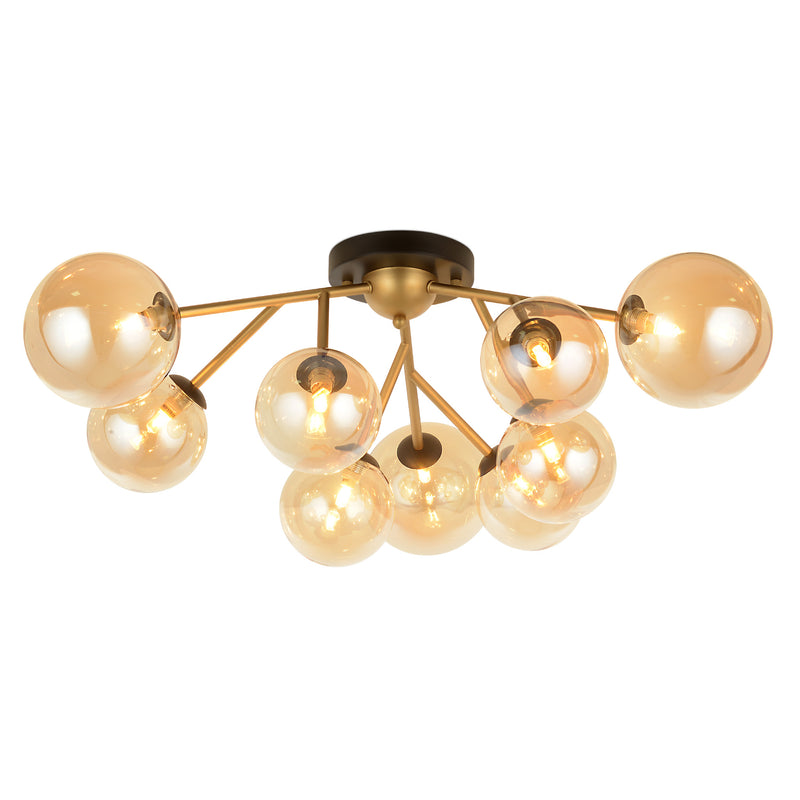 Plafonieră Midar. Corpul de iluminat din gama Midar este o alegere potrivită atât pentru un design clasic, cât și pentru unul modern. Piesa este confecționată din sticlă și metal, în culori elegante de auriu și negru.
