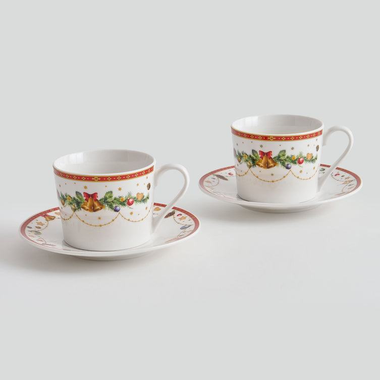 BELLS Set 2 cești și farfurioare, porțelan, 220ml