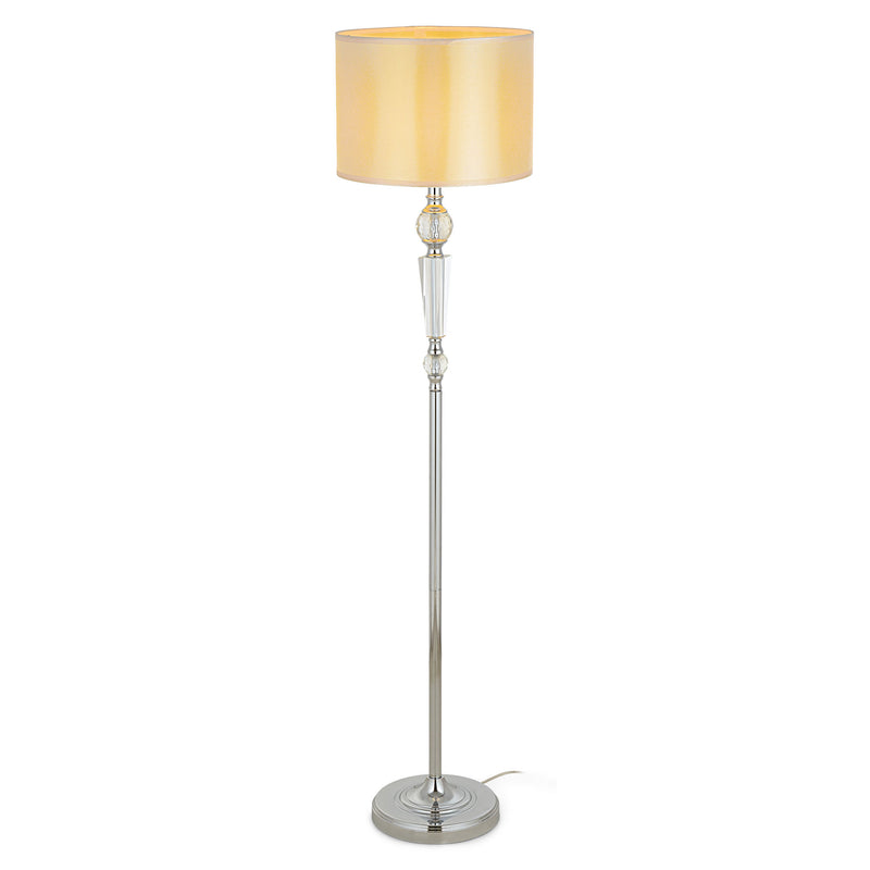 Lampadar Hakim. Eleganța capătă forme cu lampadarul din gama Hakim. Corpul de iluminat este ideal pentru un design rafinat, în stil modern. Liniile luxuriante și formele geometrice din cristal bucură vizual, iar abajurul simplu, din material textil parcă îmbracă lumina într-o aură care fascinează. Corpul de iluminat va completa cu grație și bun gust livingul sau dormitorul vostru.