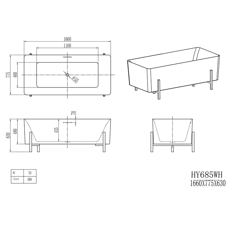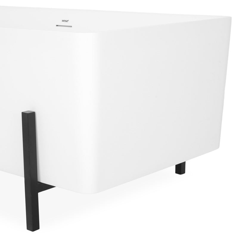 Cadă, acril Gallos. Realizată din acril finisaj mat. Include picioare din inox vopsite finisaj negru mat. Sifonul, ventilul și preaplinul sunt incluse.