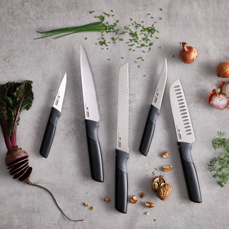 Cuțit pâine Elevate. Funcționale și deosebit de calitative, cuțitele din gama Elevate sunt ustensile care nu trebuie să lipsească din bucătăria voastră. Cuțitul are o lamă zimțată realizată din inox, cu ajutorul căreia puteți felia pâinea într-un mod eficient și rapid. Datorită mânerului din silicon, acesta este ușor și sigur de manevrat, evitând riscul alunecării.