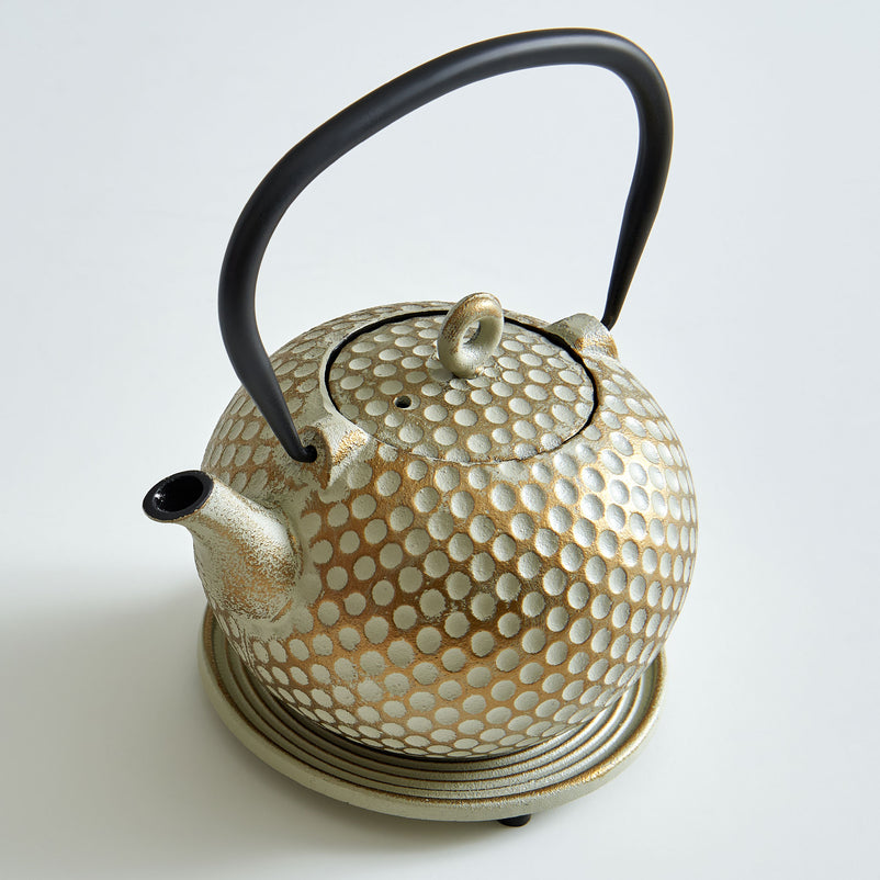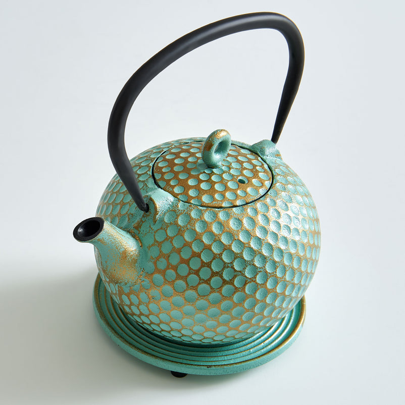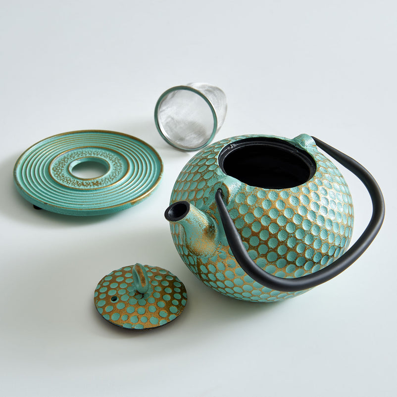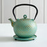 Ceainic cu trivei, fontă Aki. Caracteristicile fontei: Fonta se caracterizează prin capacitatea sa de a stoca căldura sau frigul mai mult timp. Fonta este un material rezistent în timp. Durata medie de viață a unui ceainic din fontă este de aproximativ 5 ani. Instrucțiuni de folosire: Înainte de prima utilizare, trebuie să clătiți produsul de mai multe ori cu apă călduță și apoi se usucă bine. Fonta nu este potrivită pentru niciun tip de sursă de căldură, se recomandă infuzarea ceaiului în funcție de tipul de ceai. Lăsați produsul încălzit să se răcească înainte de clătirea manuală, evitați fluctuațiile de temperatură (a nu se turna apă rece peste produsul încins).