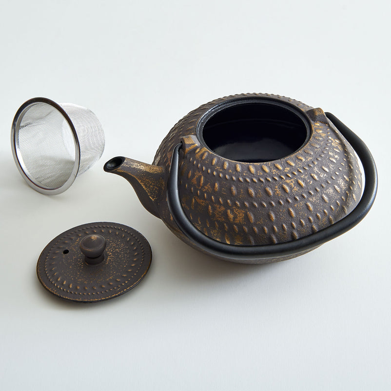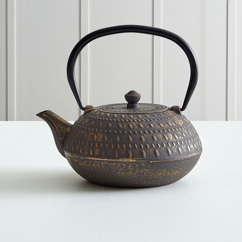 Ceainic, fontă Stripe. Caracteristicile fontei: Fonta se caracterizează prin capacitatea sa de a stoca căldura sau frigul mai mult timp. Fonta este un material rezistent în timp. Durata medie de viață a unui ceainic din fontă este de aproximativ 5 ani. Instrucțiuni de folosire: Înainte de prima utilizare, trebuie să clătiți produsul de mai multe ori cu apă călduță și apoi se usucă bine. Fonta nu este potrivită pentru niciun tip de sursă de căldură, se recomandă infuzarea ceaiului în funcție de tipul de ceai. Lăsați produsul încălzit să se răcească înainte de clătirea manuală, evitați fluctuațiile de temperatură (a nu se turna apă rece peste produsul încins).