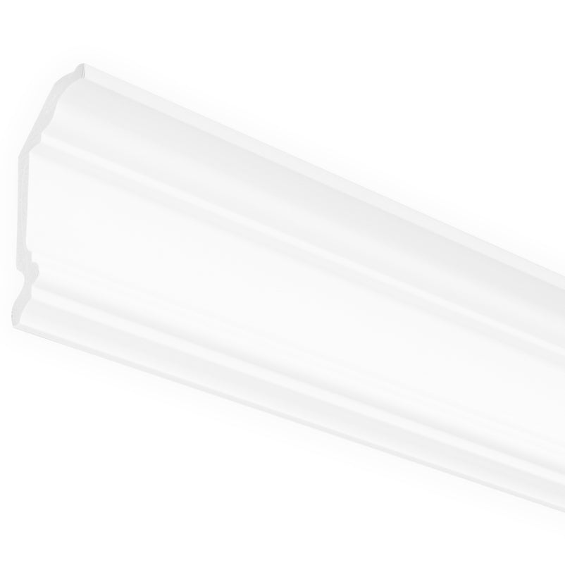Cornișă tavan Decorif. Fabricată din duropolimer, material compozit avansat, cunoscut pentru rezistența sa la umiditate, impact și variații de temperatură. Materialul duropolimer oferă stabilitate și rezistență, asigurând protecție împotriva zgârieturilor și deteriorărilor cauzate de mobilier sau alte obiecte.