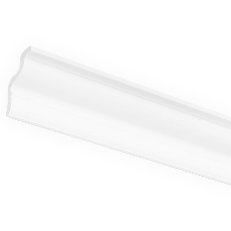 Cornișă tavan Decorif. Fabricată din duropolimer, material compozit avansat, cunoscut pentru rezistența sa la umiditate, impact și variații de temperatură. Materialul duropolimer oferă stabilitate și rezistență, asigurând protecție împotriva zgârieturilor și deteriorărilor cauzate de mobilier sau alte obiecte.