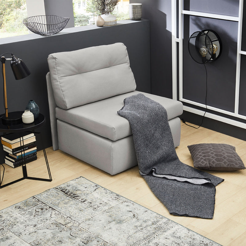 Fotoliu extensibil, stofă Andres. Momentele de relaxare și răsfăț sunt asigurate de fotoliul extensibil din gama Andres. Acesta se potrivește în mai multe tipuri de decor, extensibilitatea făcându-l extrem de util și practic pentru a avea parte chiar și de un somn odihnitor. De asemenea, perna moale cu care este dotat, se potrivește perfect pentru un confort deosebit.