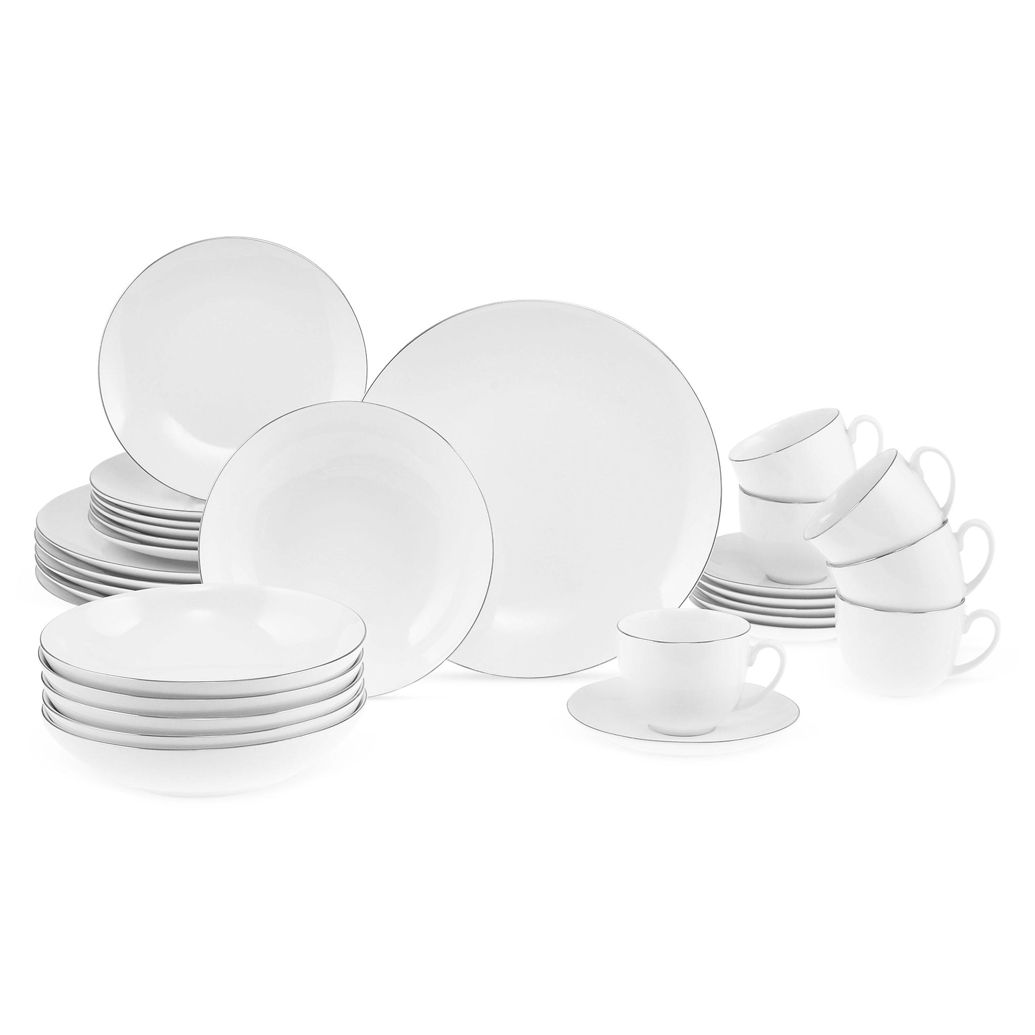 Set veselă 30 piese Clara. Completați vesela din bucătăria voastră cu un set complet, care vă va pune la dispoziție piesele de care aveți nevoie pentru servirea completă a mesei. În plus, pe lângă latura utilă a setului, acesta îndeplinește și latura estetică, piesele fiind simple și imprimând un plus de bun gust și mult rafinament.