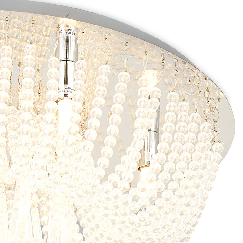 Plafonieră Berenice. Plafoniera Berenice aduce un plus de strălucire în livingul sau dormitorul vostru. Suportul metalic este completat de cristale sub forma unor mărgele și franjuri. Acestea au atât rol decorativ, cât și funcțional, contribuind la propagarea uniformă a luminii. De asemenea, plafoniera Berenice oferă un aer plin de eleganță spațiului vostru.