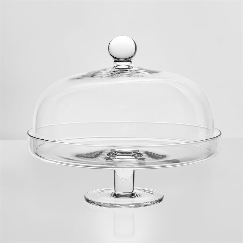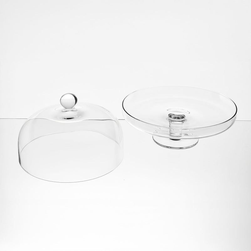 ELITE Platou cu picior și capac, sticlă, D.28cm