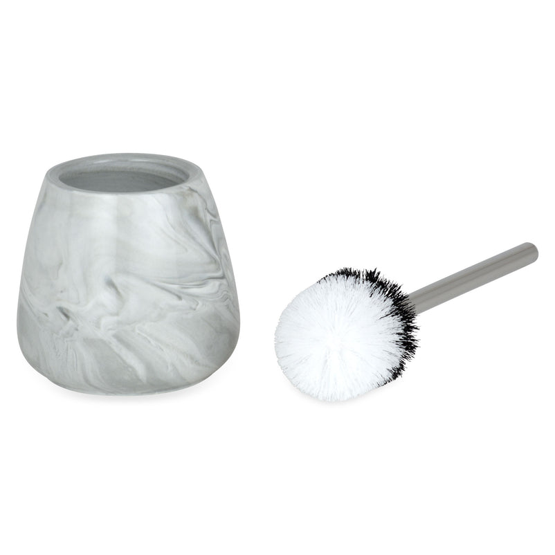 Perie WC Marble. Peria pentru WC Marble este accesoriul care trebuie să stea lângă vasul de toaletă din baie pentru a o avea la îndemână tot timpul atunci când vreți să faceți curățenie. Acest suport este realizat în totalitate din porțelan și are un finisaj lucios, modelul cu care este decorat fiind unul elegant.