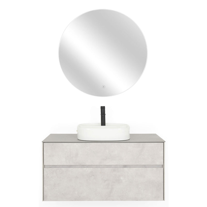 Set mobilier baie, mască lavoar, top, oglindă LED, lavoar Lamina. Într-o baie modernă, setul de baie Lamina strălucea cu un farmec aparte. Cabinetul din gri ciment și placa de porțelan Bassatina se îmbinau armonios, aducând un aer de sofisticare. Fiecare dimineață începea cu deschiderea sertarului silențios, unde produsele esențiale erau ordonate cu grijă.