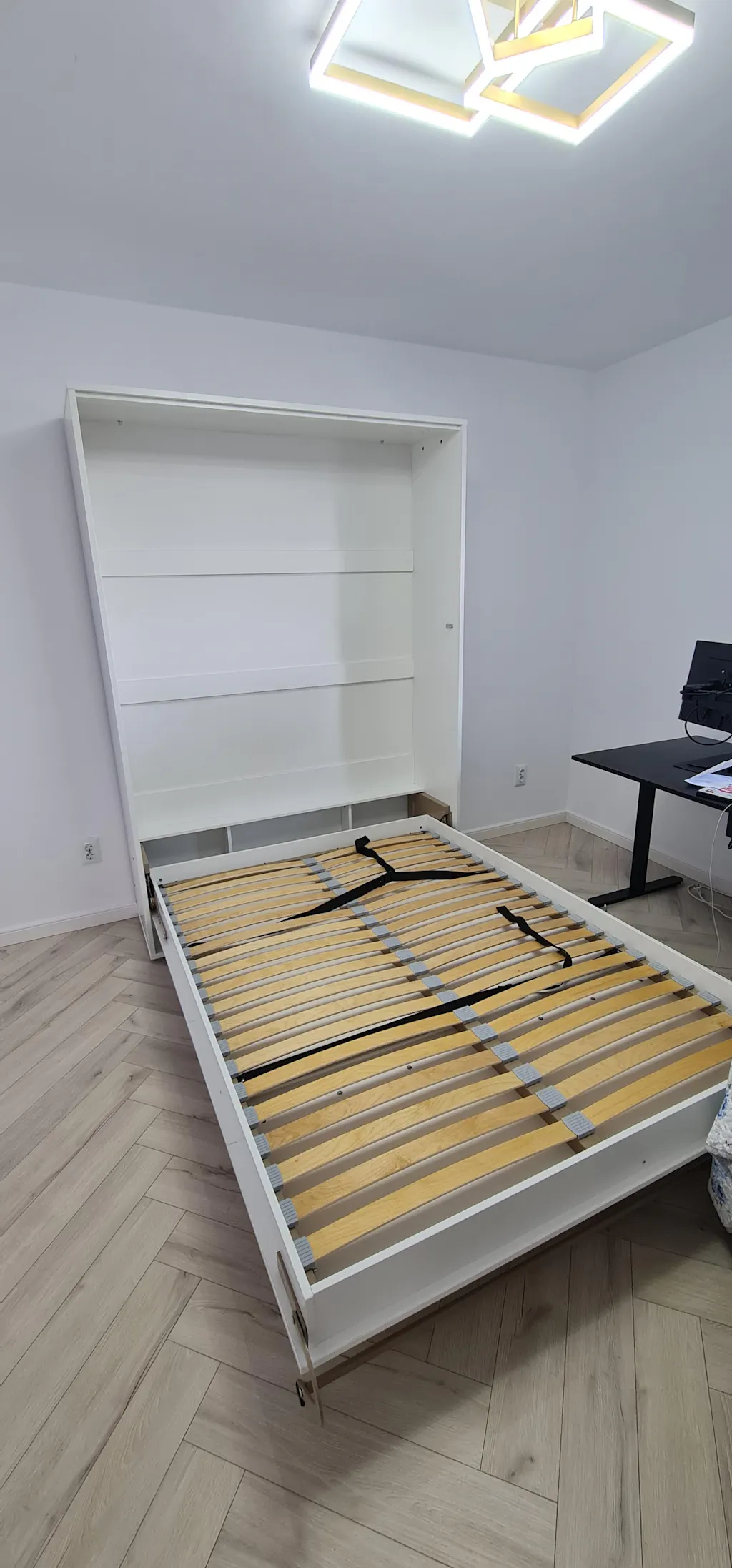 Pat cu mecanism vertical Smart. Patul cu mecanism Smart garantează toată odihna necesară pe timpul somnului. Acesta are o structură rigidă și somieră cu lamele realizate din lemn. Mecanismul de blocare nu permite căderea patului, utilizarea acestuia fiind sigură. De asemenea, sistemul permite deschiderea și închiderea într-un mod facil. Acum, cu o singură mână puteți transforma camera de zi într-un dormitor confortabil. Extrem de funcțional și fiabil, patul rabatabil poate acomoda atât 2 copii cât și un cuplu de tineri adulți, care își doresc să aibă totul repede, la îndemână, într-o singură încăpere.