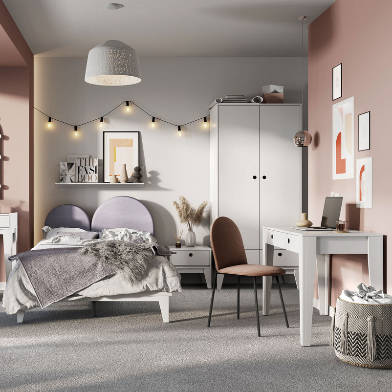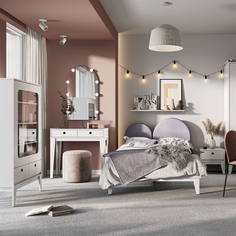 Poliță cu panou perete copii Felicity. Atractivă și funcțională, de un alb imaculat, Felicity este un "must have" pentru adolescentele fashioniste. Amenajată cu imaginație, va deveni decorul unei prințese într-un palat modern! Soluția optimă de mobilare a camerei copiilor se obține alegând dintre cele 12 module disponibile, ce acoperă toate funcțiunile necesare în camera acestora: zona de studiu, somn și depozitare. Facil de accesat și utilizat, multitudinea sertarelor oferă suficient spațiu de depozitare deopotrivă pentru haine, păpuși, cărți. Mobilierul se distinge printr-un design suplu, cu picioare înalte și un finisaj alb ca zăpada și este realizat din PAL melaminat finisat cu cant rezistent ABS. Mânerele sunt rotunde și incorporate în ușă, din plastic negru, contrastând plăcut cu fronturile albe. Polița cu panou perete este foarte utilă pentru depozitarea pe verticală a cărților sau diferitelor obiecte decorative.
