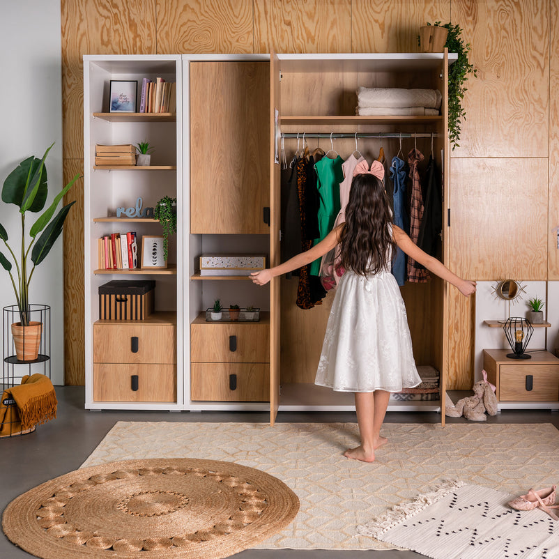 MELINA Dulap copii, 3 uși, 2 sertare, 2 nișe