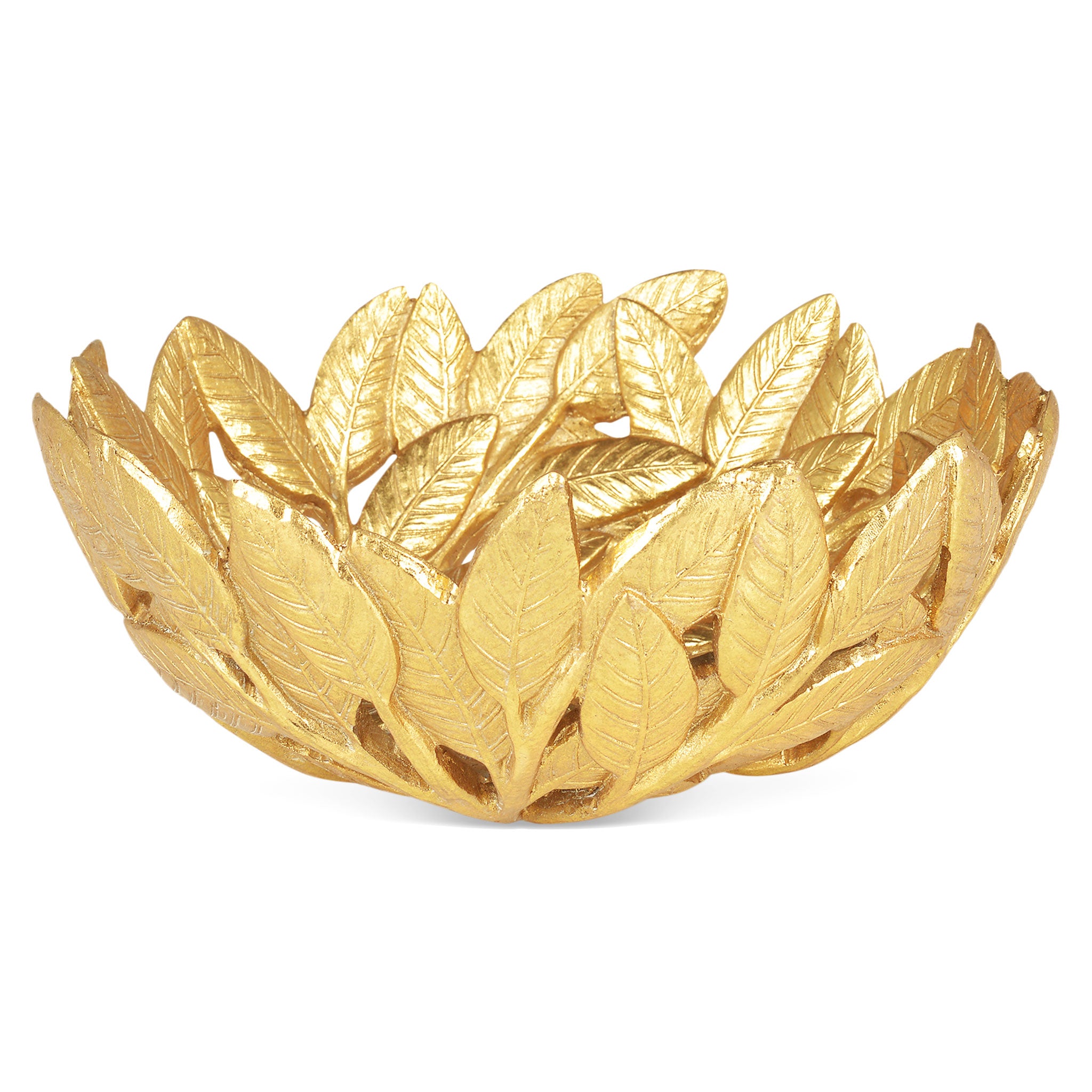 Bol Leaves. Bolul decorativ Leaves completează imaginea încăperii cu un plus de stil și rafinament. Decorațiunea este realizată din polirăşină, cu finisaj antichizat și are o cromatică aurie, asigurând autenticitate în decorul spațiului în care este așezat.