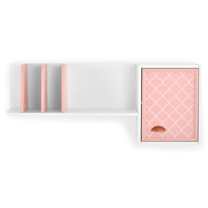 Corp suspendat pentru copii, 1 ușă Lilybel. Elegantă și diafană, Lilybel este o cameră specială, care nu poate rămâne neremarcată. Având finisajul bicolor alb și roz, aceasta dispune de rame decorative și motive imprimate pe uși și sertare ce contrastează cu accesoriile, oglinzile și mânerele metalo ceramice gold rose. Gama de mobilier Lilybel este realizată din panouri aglomerate din lemn, mdf melaminat și lemn masiv, reprezentând o alegere durabilă și rezistentă. Pentru crearea unui design rafinat, acestea au imprimeul obținut prin tehnologie UV. Corpul suspendat cu o ușă din gama Lilybel este alegerea perfectă pentru ca cea mică să își dea frâu imaginației. Acesta este bine compartimentat pentru organizarea eficientă a rechizitelor și jucăriilor.