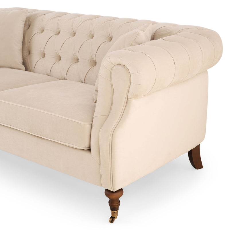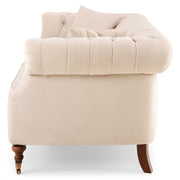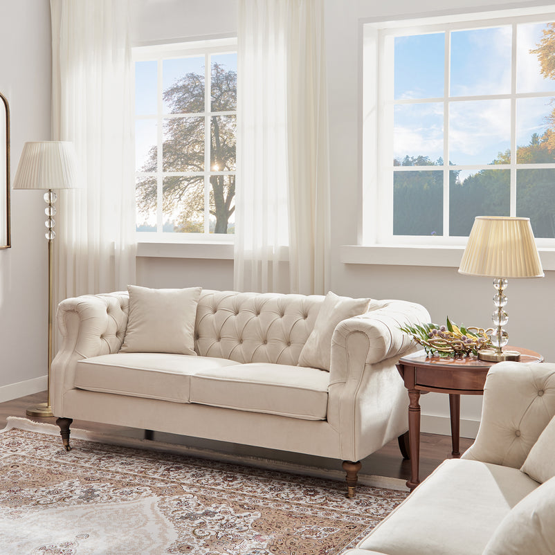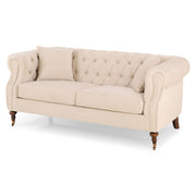 Canapea 2 locuri, stofă Wales. Canapeaua cu 2 locuri din gama Wales aduce un aer rafinat și elegant în livingul vostru, aceasta insuflând decorului o frumusețe deosebită. Aceasta este confecționată din stofă, finisajul în culoarea bej aducându-i un aspect plăcut. Formele canapelei sunt elegante, asigurându-vă un confort perfect de fiecare dată când vreți să vă relaxați. De asemenea, picioarele epatează prin formă, cele două din față fiind pe rotile.