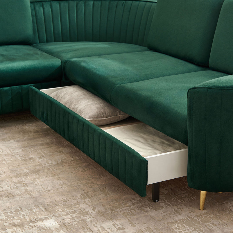 CECILIA Colțar extensibil stânga/dreapta cu ladă depozitare, stofă