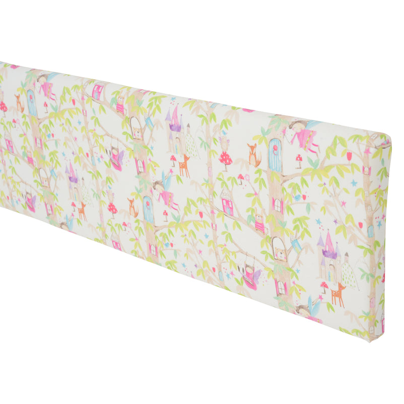 Laterală tapițată pat copii Fancy. Laterala tapițată Fancy îi protejează pe cei mici de eventuale lovituri în perete. Este realizată din lonjeron din lemn masiv și panouri aglomerate din lemn, fiind acoperită cu spumă poliuretanică și tapițată cu microfibră imprimată. Plasată pe peretele lateral al patului, are un important rol de protecție.