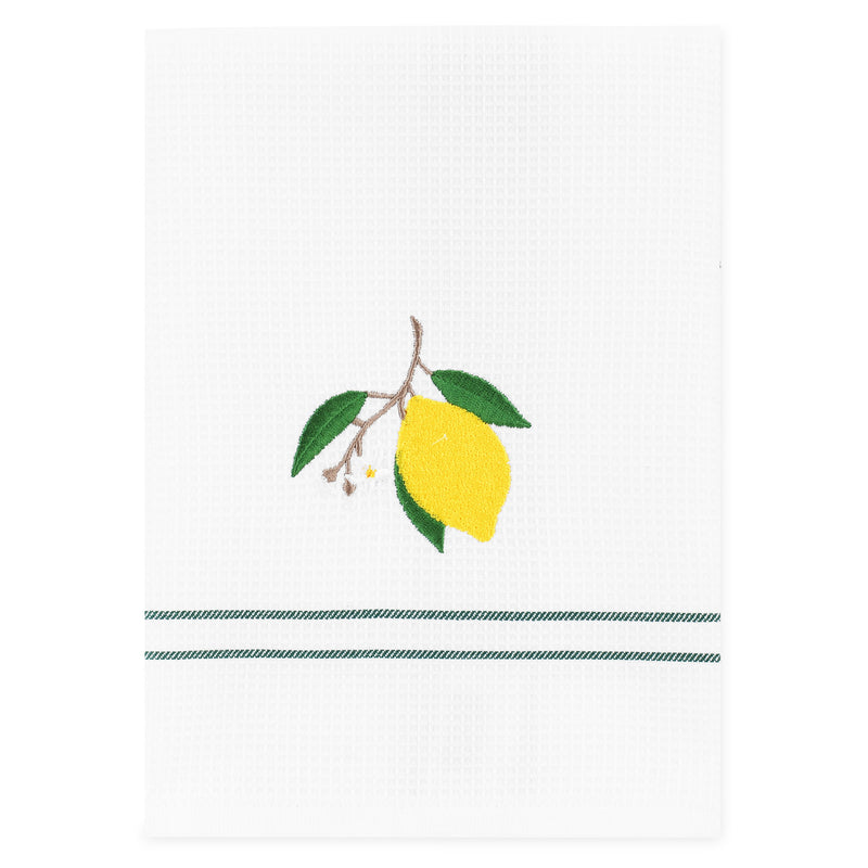 Prosop bucătărie Limao. Element util în colecția de piese din bucătărie, prosopul Limao este realizat integral din bumbac, dovedindu-și funcționalitatea în timpul gătitului. Decorat cu imaginea unei lămâi, este și un accesoriu de efect pentru spațiul vostru.