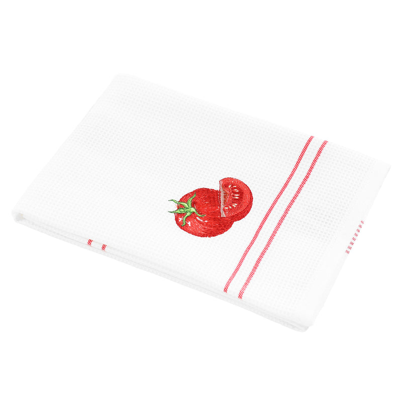 Prosop bucătărie Tomate. Adăugați un prosop de bucătărie Tomate pentru a vă fi de ajutor în timpul gătitului. Acesta vă scapă de murdăria nedorită și vă înveselește spațiul din bucătărie prin intermediul modelului delicat. De asemenea, este durabil și rezistent datorită materialelor de calitate din care este fabricat.
